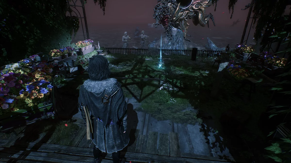 Если спуститься на уровень ниже, можно попасть к мини-боссу «Хрома-культистка с мечом», награда после победы — оружие «Сирессо». Тут же можно найти пиктосы «Эффективное исцеление»: удвоение любого полученного исцеления и «Сверх-броня»: броня поглощает на 10% больше урона. Затем нужно подняться к первому флагу и пойти к следующей платформе.
