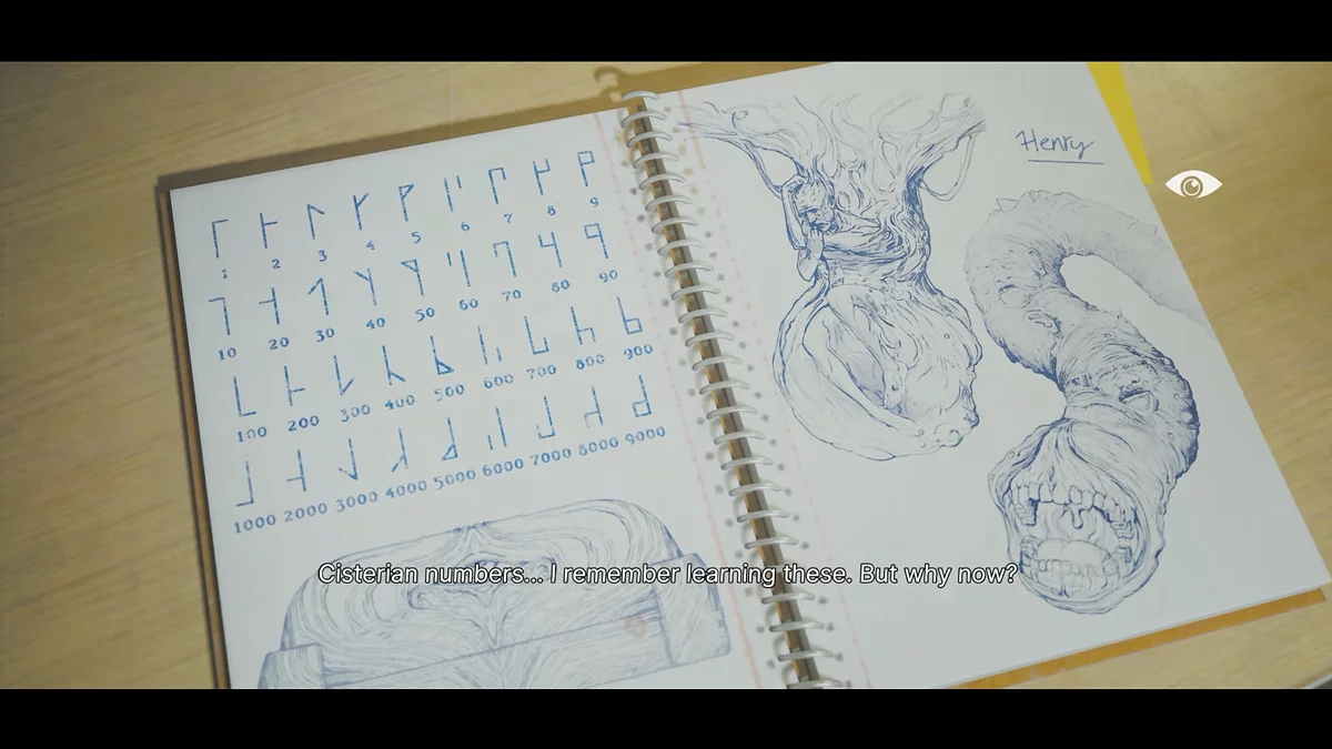 В этот раз загадка снова связана с мониторами на втором этаже. Как можно заметить, на них изображены некие символы. Внизу, в помещении справа от лестницы, найдите их расшифровку. Обратите внимание, что если изображение в обозначении достигает значения тысячи, то надо его перевернуть и получить требуемую цифру. Сопоставив все значения, учтите порядок компьютеров слева направо. Должно получиться 57912.