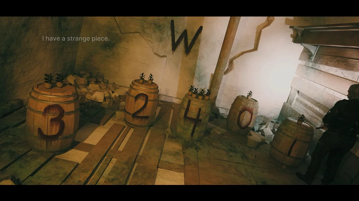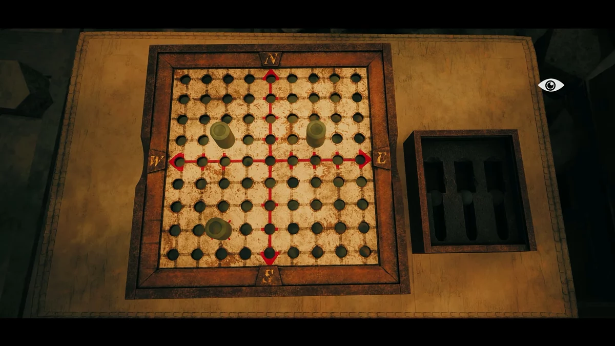 По всей локации вам попадутся числа и буквы, связанные со сторонами света. В конечном счете, собрав все фигурки, вы доберетесь до доски. Первую из них необходимо положить на место, уже отмеченное на поле. Чтобы поставить две другие, от центра для первой пройдите две клетки на запад и одну на север, для второй — две на восток и снова одну на север.