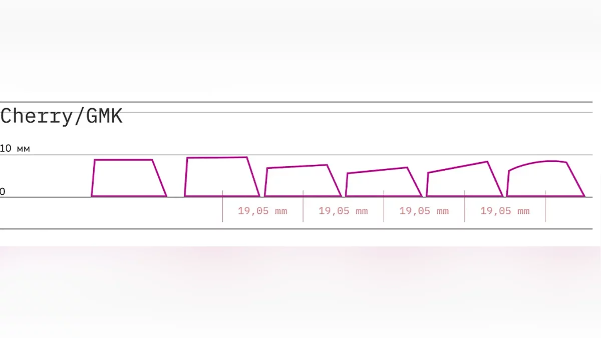 Простыми словами, профиль кейкапов — это вид кейкапов сбоку. Если чуть усложнить, то это различия рядов кейкапов по углу наклона, высоте и форме контактной площадки.