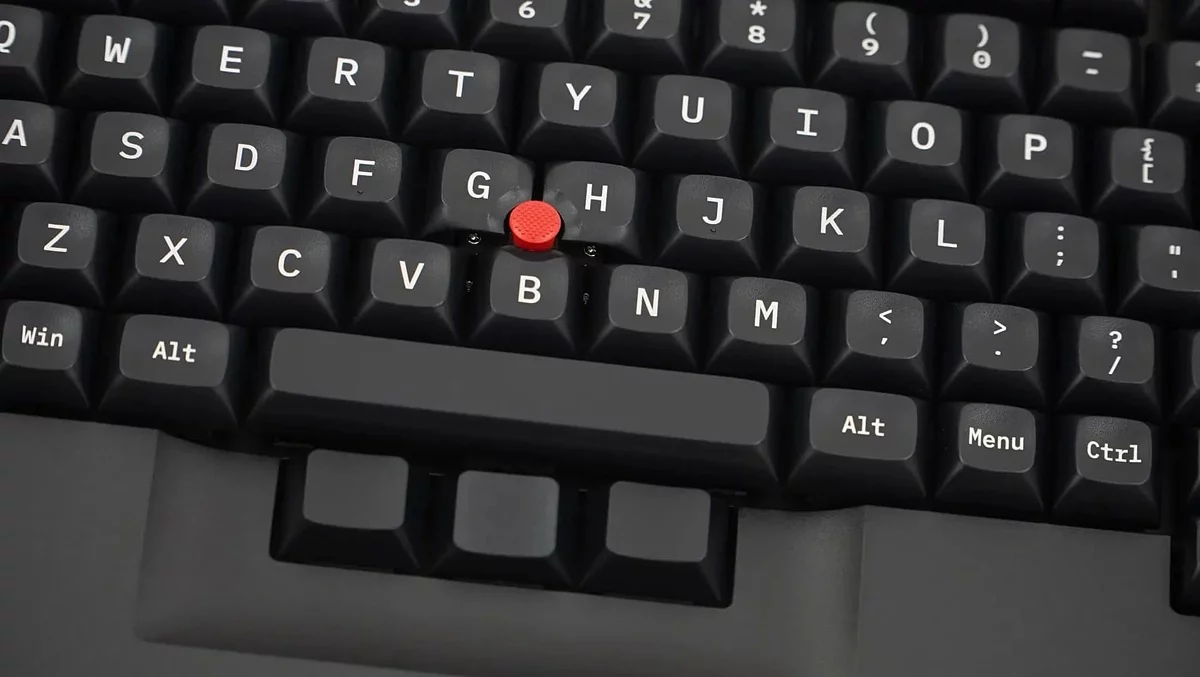 Стик поинт. Маленькая кнопочка, которая заменяет функцию мыши. То есть для полноценного пользования компьютером вам будет достаточно только клавиатуры со стик поинтом. Редкая штука, пользоваться непривычно, но она по-прежнему встречается.