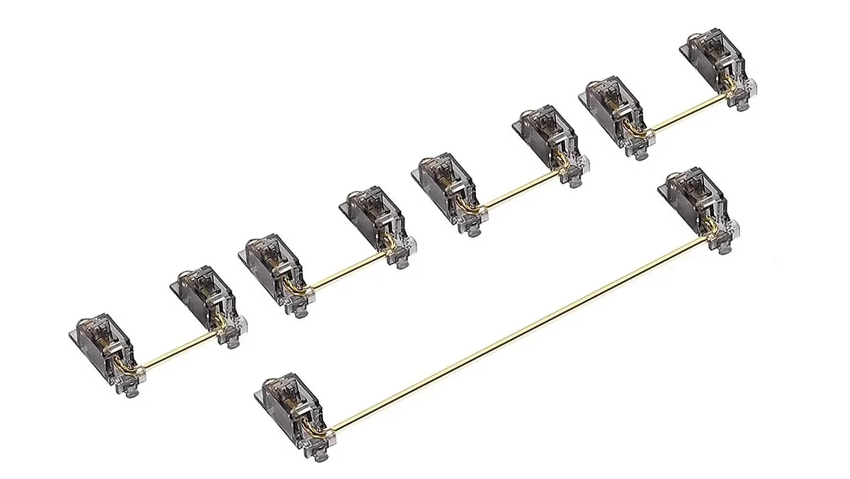Стабилизаторы. Это вспомогательные механизмы под длинными клавишами: space, enter, shift. Они нужны для того, чтобы длинные клавиши не были похожи на качели и нажимались равномерно, даже если вы нажмете не ровно в центр клавиши. Без стабилизаторов не обходятся и самые дешёвые мембранные клавиатуры, без них просто нельзя.