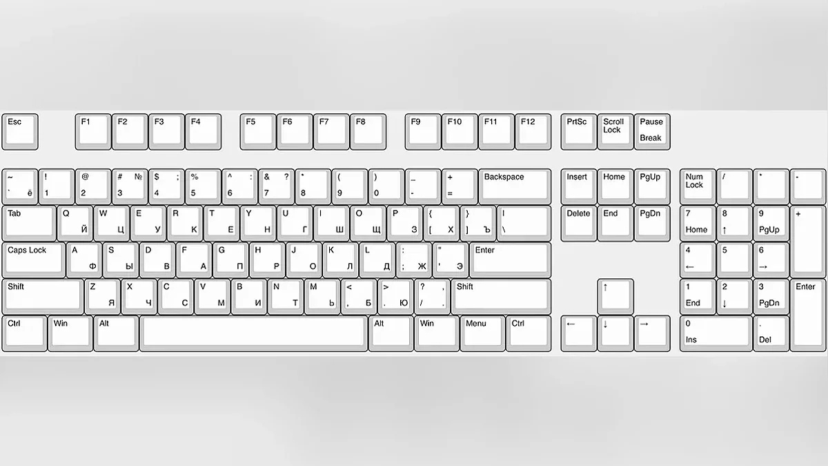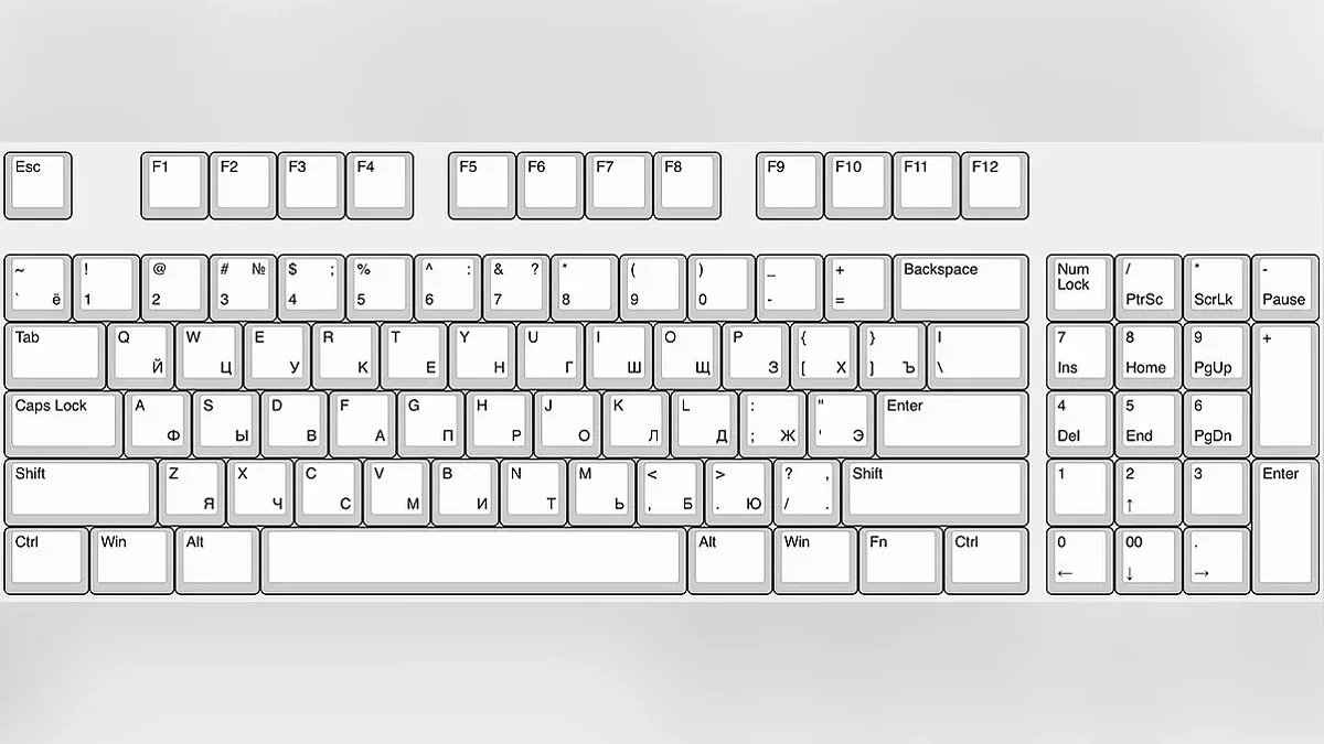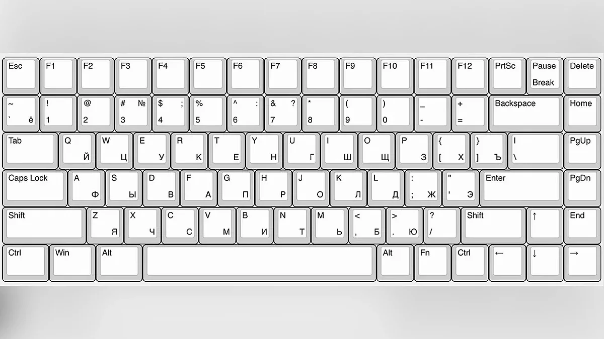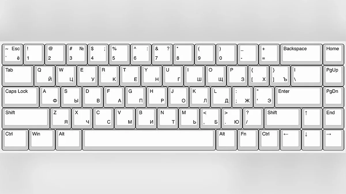 Клавиатура 40%. Самый экстремальный вариант, работа за которым потребует долгого обучения и десятипальцевой печати. В нем нет еще и верхнего ряда цифровых клавиш. Чтобы ввести цифры, нужно зажать Fn или переключиться на специальную раскладку, где вместо букв — цифры и разные спецсимволы. В прибавку к этому ещё недостаток букв кириллицы: Ё, Х, Ъ. С этим тоже придётся неудобно ухищряться.