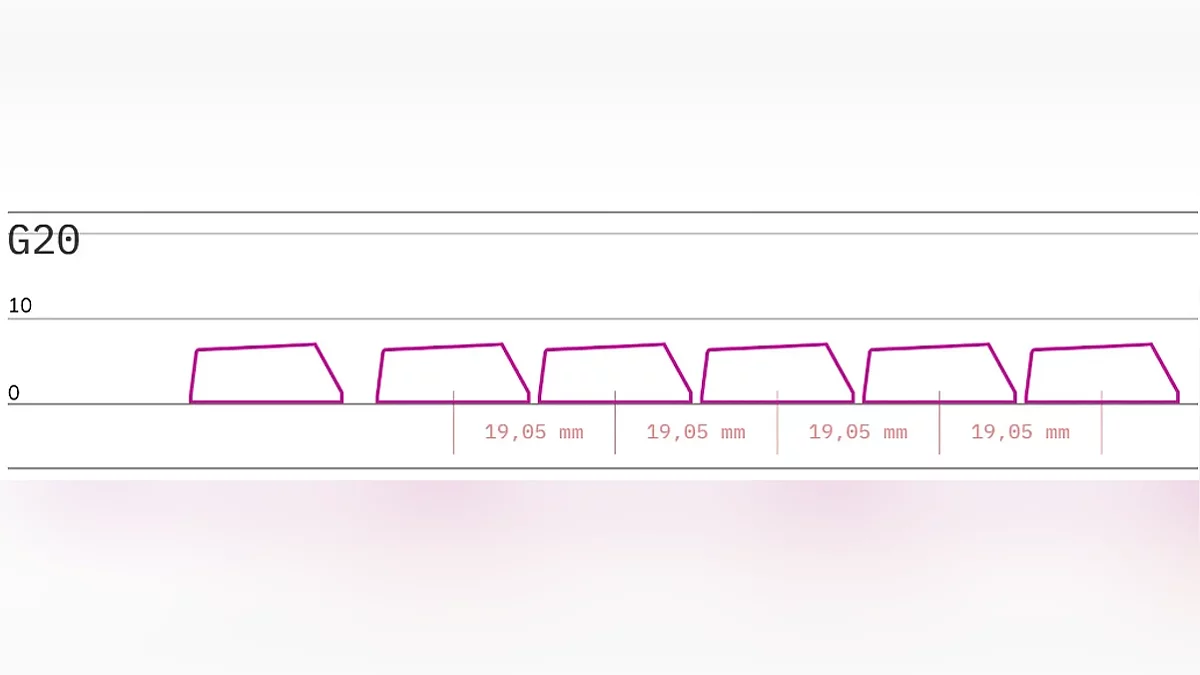 - G20. Низкий профиль с большой контактной площадью и плавным переходом от одного кейкапа к другому.