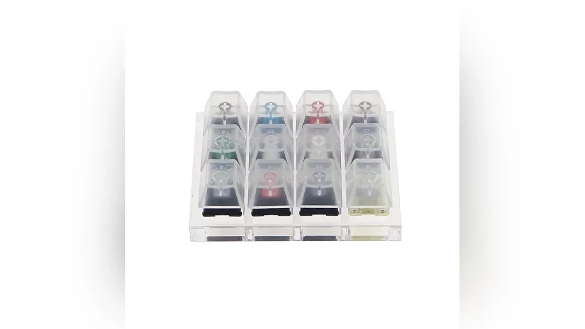 Обратите внимание на анимации. На разницу перемещения кликбара (пружина слева) по пластмассовому стему прежде, чем коснуться контактных пластин — момент замыкания ключа. Для особо заинтересованных на официальном сайте cherry.de есть подробная информация по каждому виду переключателей с графиками зависимости силы от глубины нажатия и точек срабатывания. У незнакомых с механикой людей бытует мнение, что она громкая и шумная. Это не так. Гремят только щёлкающие переключатели. Остальные потише многих мембранок будут. Особенно некоторые переключатели с демпфирующим элементом вроде Cherry MX Silent Red. Плюс к тому же дорогие не мембранные клавиатуры могут иметь в корпусе шумопоглощающий материал. Кроме того, существуют специальные шумопоглощающие кольца o-ring. Чтобы определиться с выбором переключателей перед покупкой клавиатуры, предварительно можно приобрести специальный пробник из ассорти переключателей и как следует прожмякать. Найти его можно, например, на Ozon по запросу: «тестер механических переключателей клавиатуры». Набор из двенадцати различных видов переключателей Cherry MX. Механические клавиатуры имеют более длительный срок службы по сравнению с мембранными клавиатурами, так как их переключатели могут выдерживать до 50-100 миллионов нажатий. Механические клавиатуры ремонтопригодны. Кроме наборов кейкапов, замене подлежат также переключатели, которые в моделях последних лет даже не нужно перепаивать. Они просто вынимаются и ставляются с запасом прочности до нескольких тысяч раз вынуть/вставить. Это называется hot-swap или горячая замена. Её могут иметь не только механические переключатели, но и прочие переключатели подобного формата и строения клавиатуры. Магнитные и оптические. О них позже.