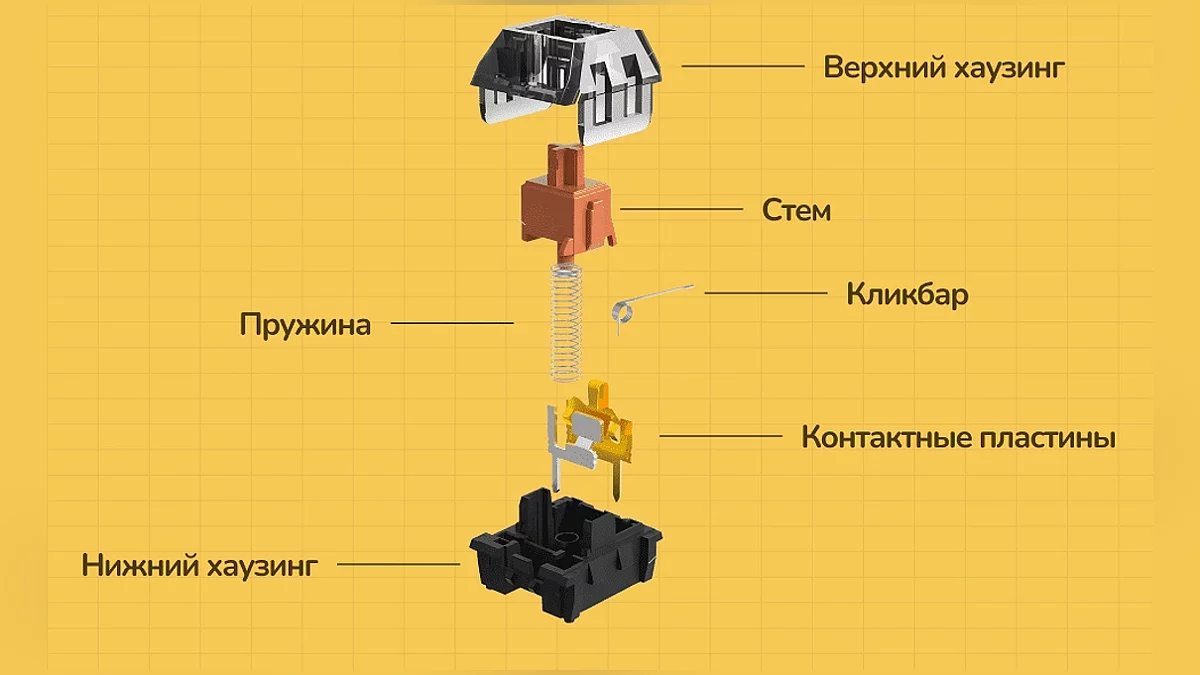 Далее сказанное будет относиться не только к механическим клавиатурам, но и ко всяким прочим в более дорогом сегменте. Оптическим и магнитным. Мембранки в виду общей дешевизны ничем подобным не оснащены, за некоторыми исключениями. Как видно по картинке выше, клавиатура состоит из порядка слоёв. Рассмотрим каждый.