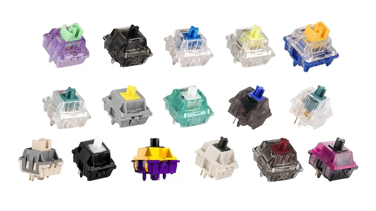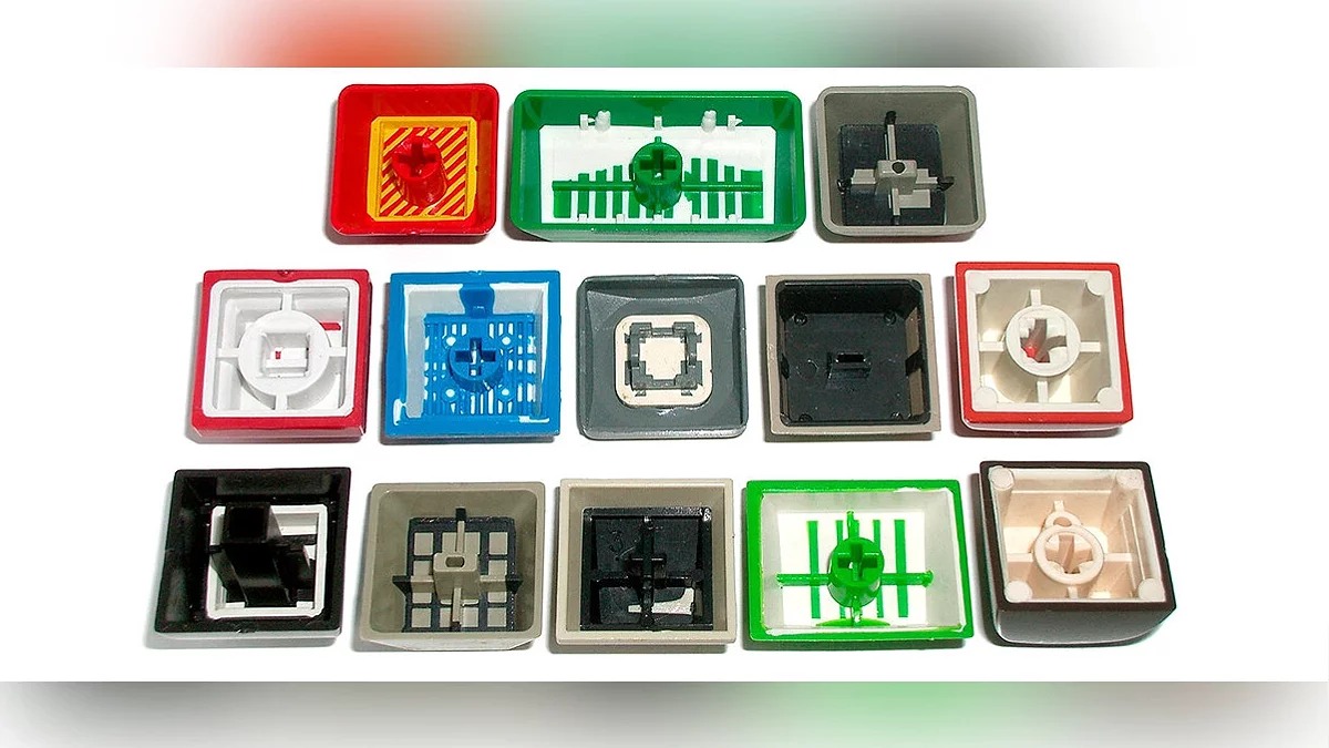 Механические клавиатуры. Вид клавиатуры, в которой регистрация сигнала осуществляется нажатием механических переключателей. Наличие металлической пружины обеспечивает мягкий возврат клавиши в исходную позицию. Замыкание и размыкание контактов, расположенных внутри переключателей, происходит механическим путём и, в отличие от мембранных переключателей, не на самом дне хода клавиши, а в некой средней точке, в зависимости от типа переключателя. Существует множество типов механических переключателей, разделяемых по различным параметрам цветовой градацией. Но условно можно разделить на три категории: