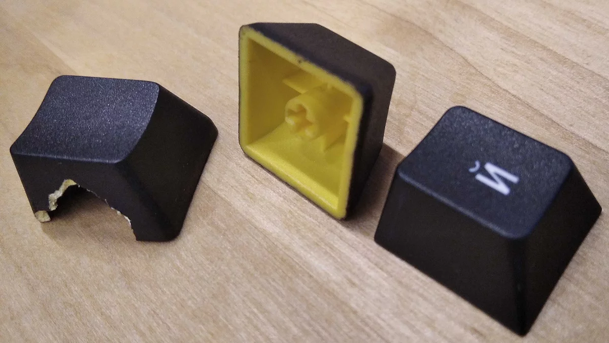 Также можно отливать даблшот из материалов с разной степенью прозрачности и делать кейкапы, которые так любят любители подсветки, — с прозрачными символами для RGB-подсветок. И да, нынче научились делать триплшоты, можно отливать символы разных цветов.