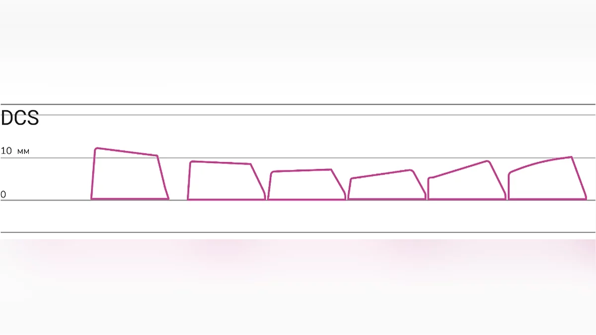 - KAM. Профиль на основе скульптурного KAT. При этом контактная площадка шире, а профиль выше, чем у DSA.