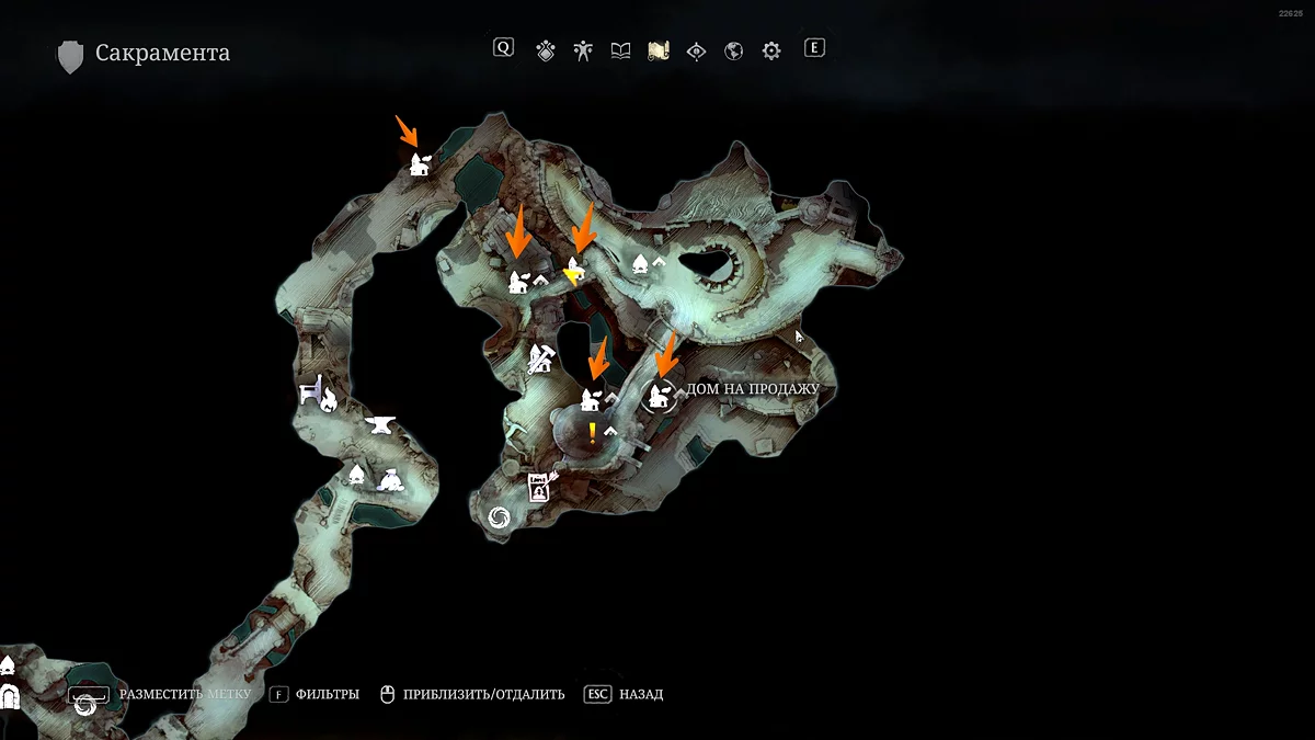 Купить дом можно по завершении сюжетного задания «Сакрамента», после встречи с хранителем и его учеником Роаном. Для того чтобы посмотреть доступное для покупки жильё, откройте карту и найдите значки с пометкой «Дом на продажу». Затем подойдите к табличке одного из зданий, и в верхней части экрана вы увидите стоимость жилья.
