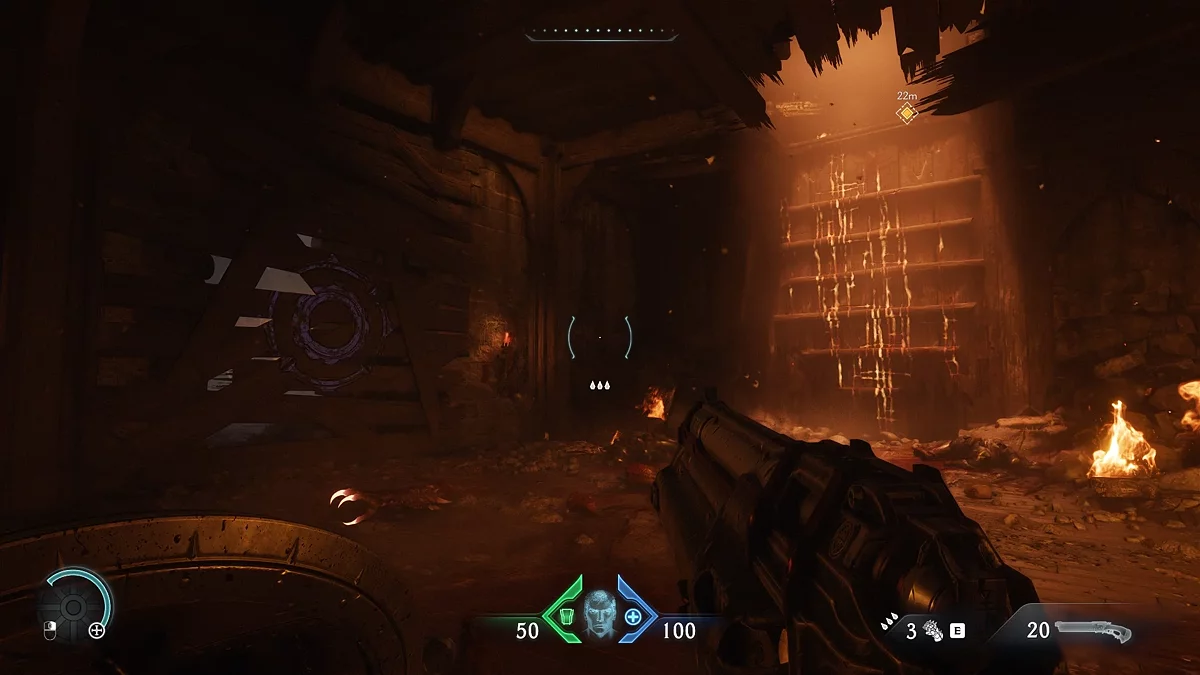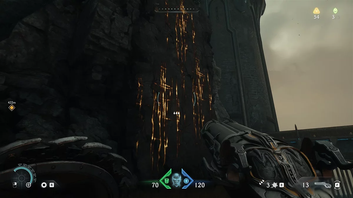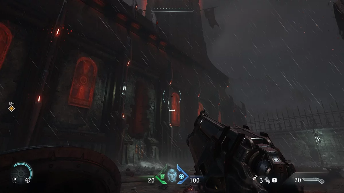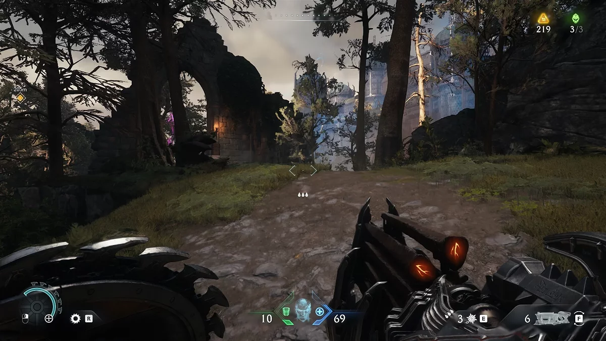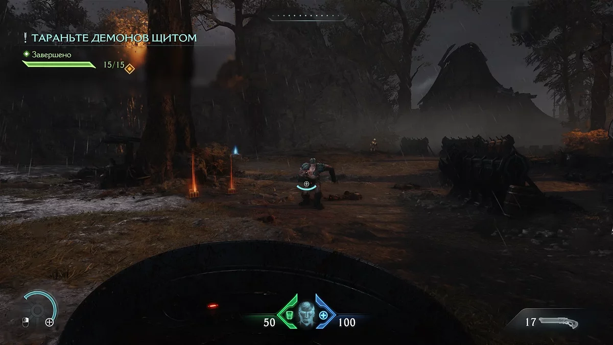 Уничтожьте 15 демонов и покиньте территорию через отмеченную маркером стену, на которую можно забраться. Обратите внимание: в The Dark Ages появилось множество вертикальных поверхностей для лазания, где часто прячутся секретные тайники. Продолжайте движение прямо до следующего препятствия. Используйте щит, чтобы разрушить деревянные доски — в дальнейшем вы сможете применять эту способность для разрушения различных конструкций.
