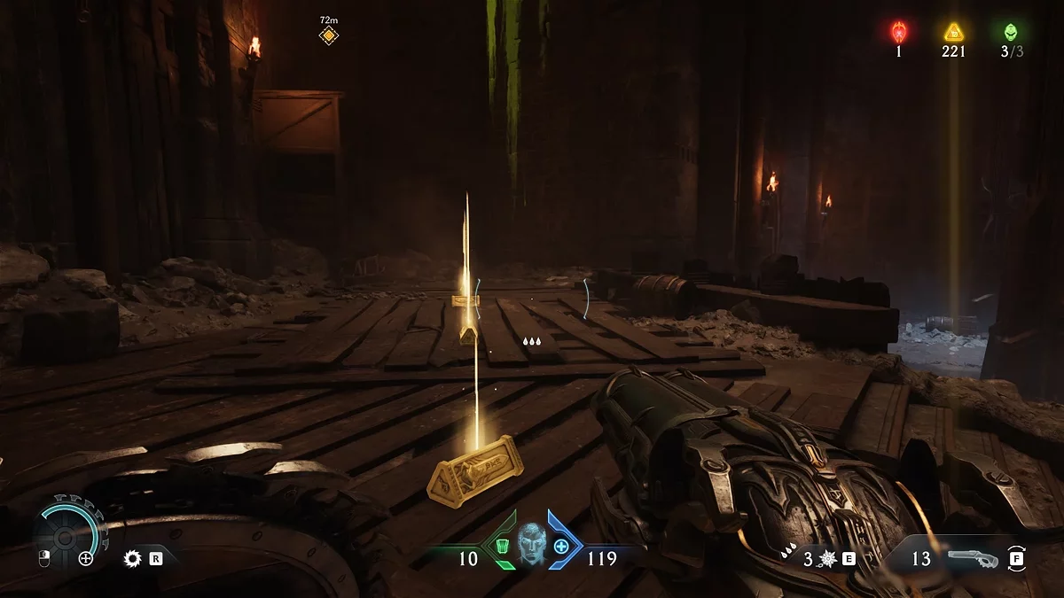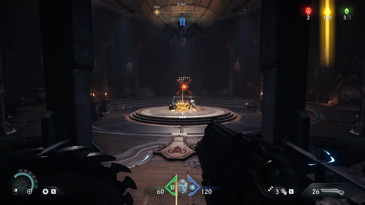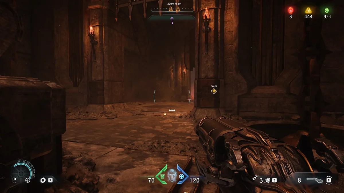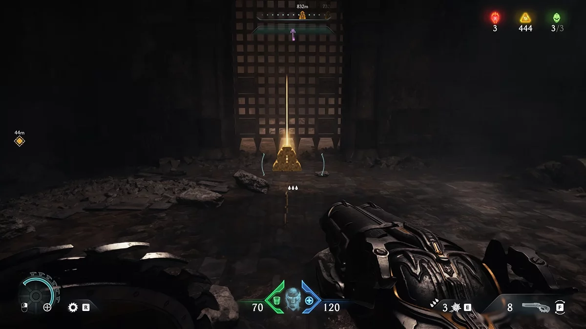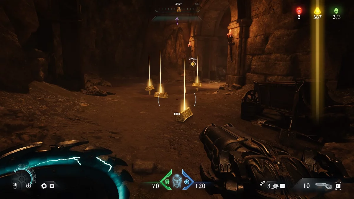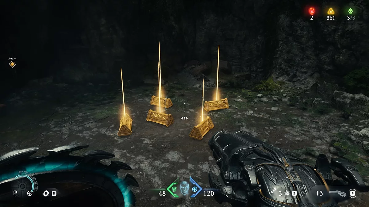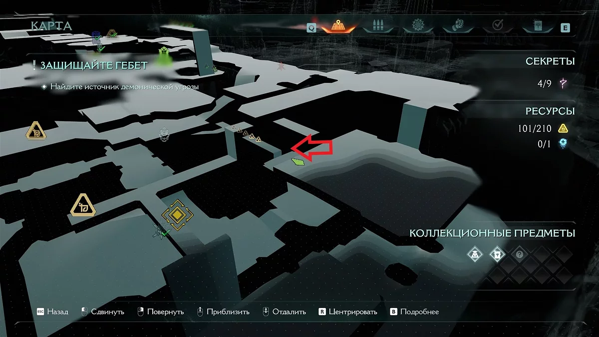 В Doom: The Dark Ages появилась особая валюта — золото. Откройте карту, чтобы увидеть обозначения «жёлтый треугольник» и «сундук». Это местоположение золота. В сундуке находится 50 единиц валюты. На месте больших треугольников лежит стопка из шести золотых слитков, на месте маленьких — отдельные слитки.