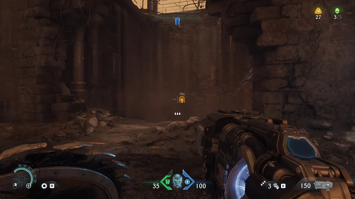 После просмотра вступительных кат-сцен вам предстоит пройти обучение. Используйте дробовик, чтобы очистить зону от противников. Поднимитесь на уступ и примените щит для блокировки вражеских выстрелов. Позже вы откроете дополнительные способности для щита, а пока продолжайте движение в следующую область.
