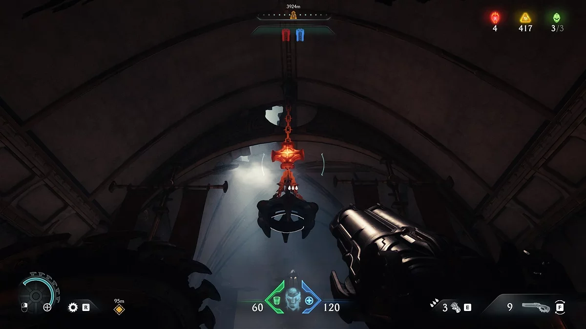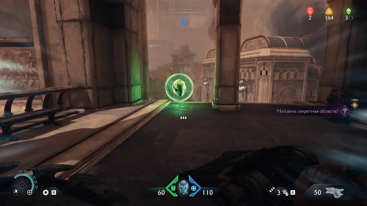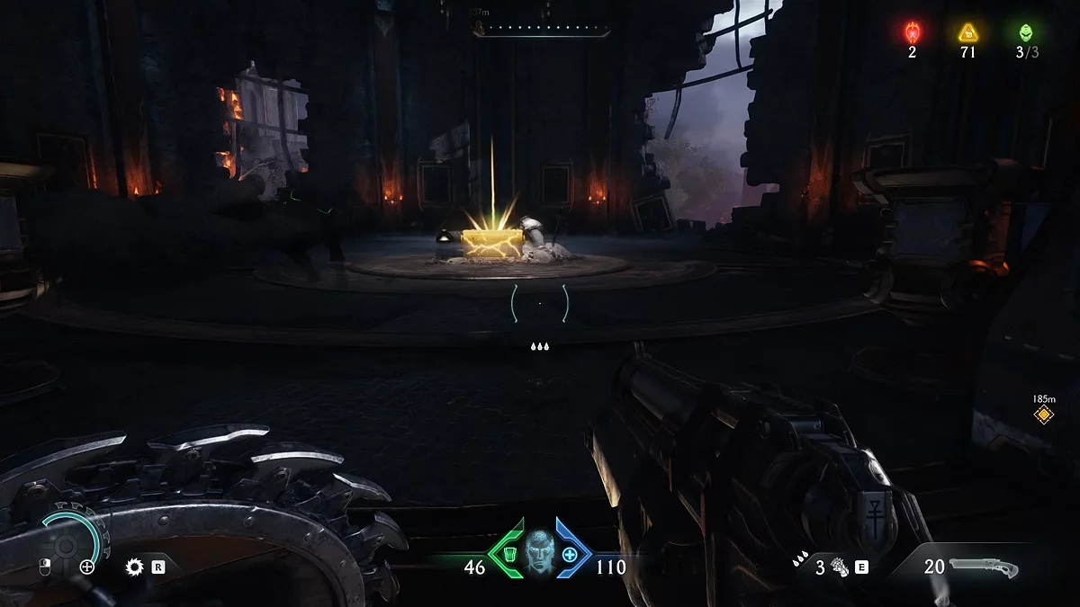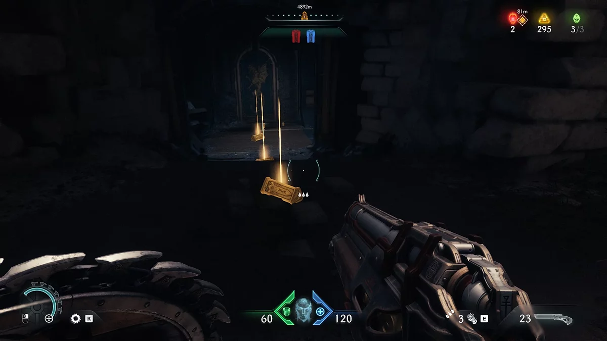 Проломите каменную стену в коридоре за ареной. За ней находится синий переключатель. Активируйте его щитом.