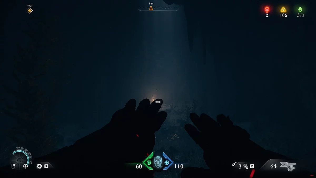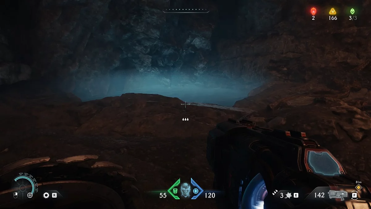 Выйдя из туннеля, поверните направо. Двигайтесь до края скалы и найдите пещеру в стене за тропой. Повысьте яркость, если не можете различить контуры. Разбегитесь и прыгните прямо в дверь. Внутри вы найдёте красные бочки и знак секрета у дальней стены. Подойдите к барьеру, стреляйте по бочкам, чтобы уничтожить противников одним выстрелом. После исчезновения барьера возьмите коллекционный скин для дробовика. Покинуть пещеру можно через батут в соседней комнате, откуда вы попадёте в помещение с амуницией.