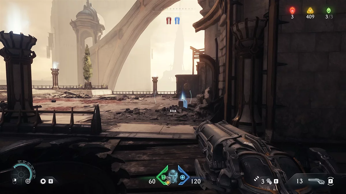 Освойте систему казней, которая в этой части стала короче и менее зрелищной по сравнению с предыдущими играми серии. Следуйте за маркером, чтобы выйти из здания и попасть на небольшую арену. Уничтожьте группу демонов за углом, используя щит для одновременной атаки нескольких противников.