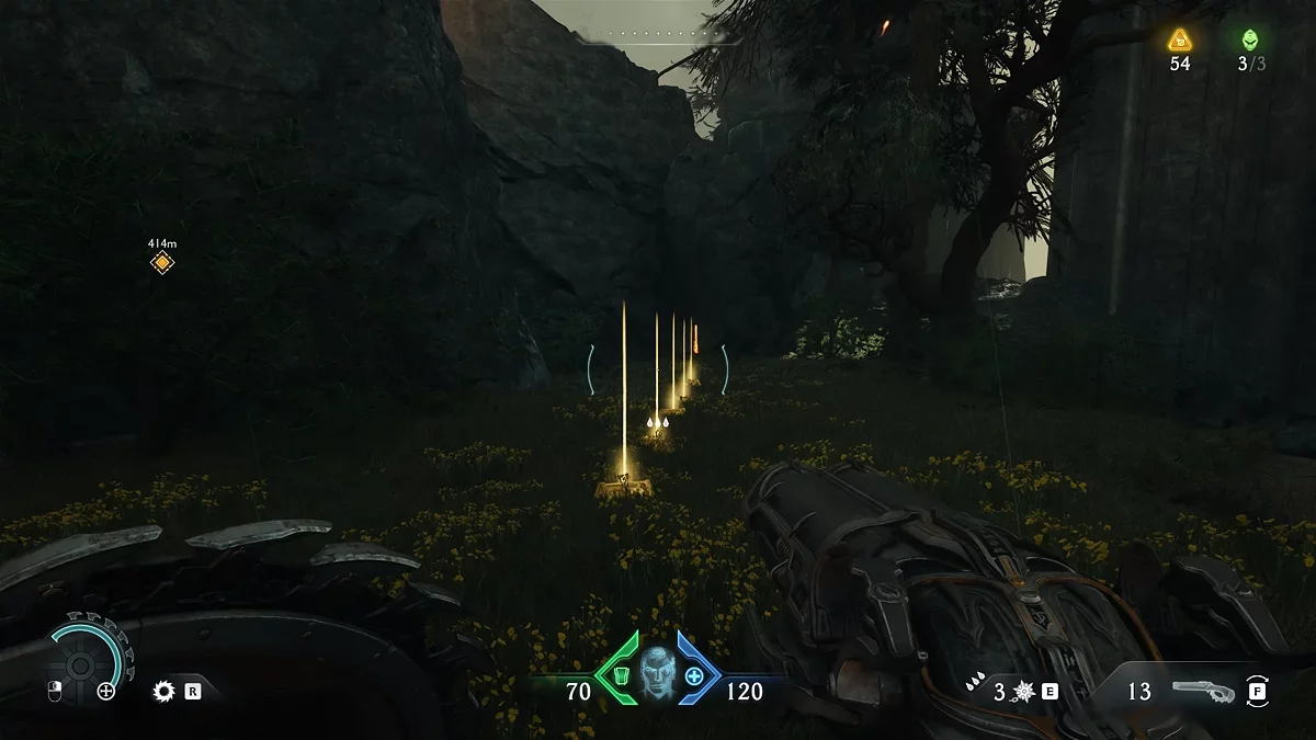 Чтобы найти кодекс Палача Рока, обойдите руины четвёртого портала справа. Поднимитесь на вершину холма, где лежит первая часть кодекса. Теперь можно отправиться к фиолетовой двери.