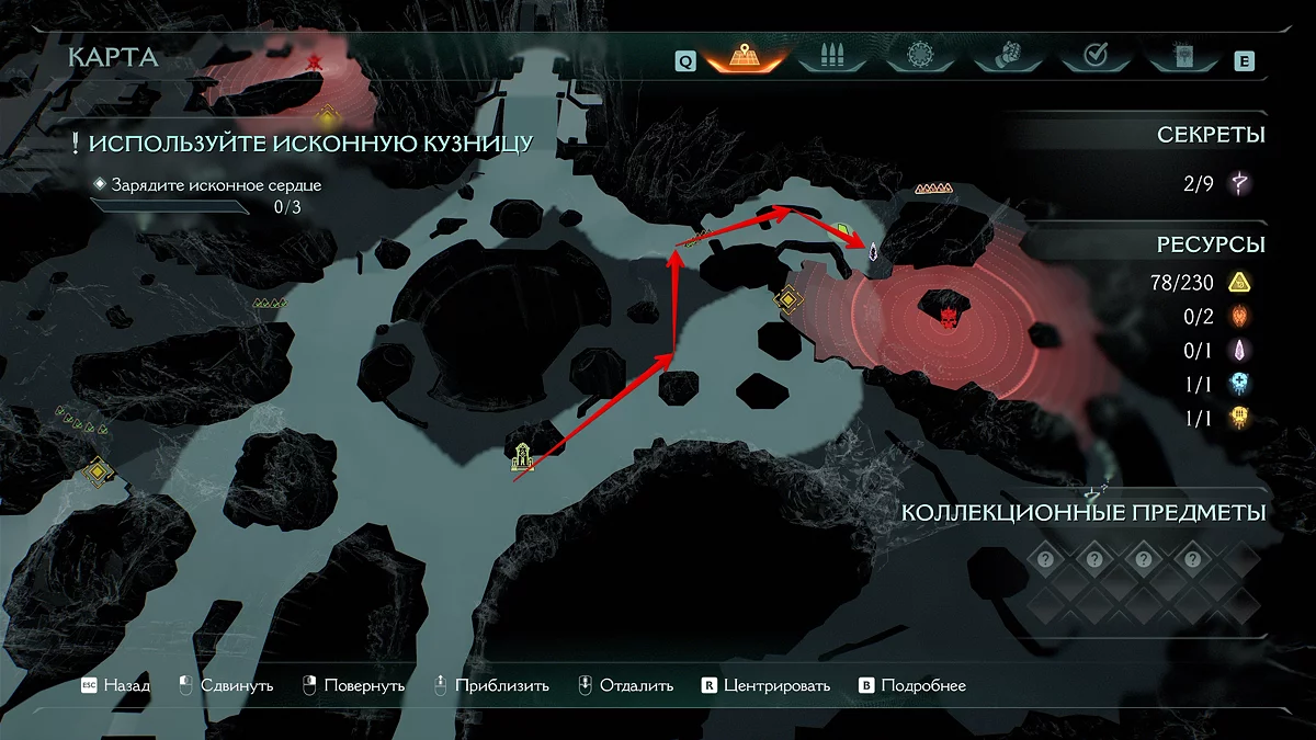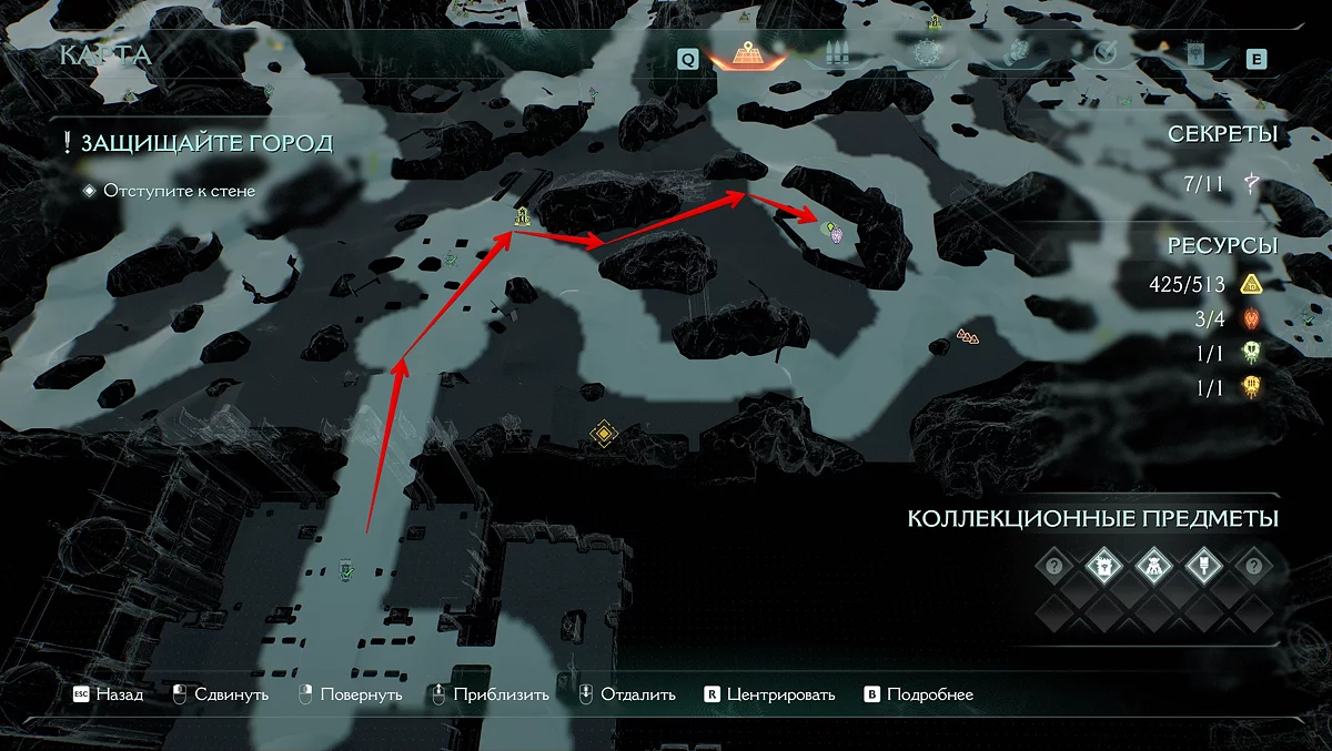 Стоя перед второй статуей, развернитесь и идите назад, затем прыгайте вниз, уничтожьте щупальца и разбейте монумент.
