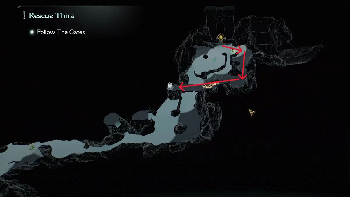Первая: От святилища стражей идите налево, пока не увидите над головой кран с печатью жизни. С помощью щита подтянитесь на помост, затем прыгайте на другую сторону и дерните за рычаг.