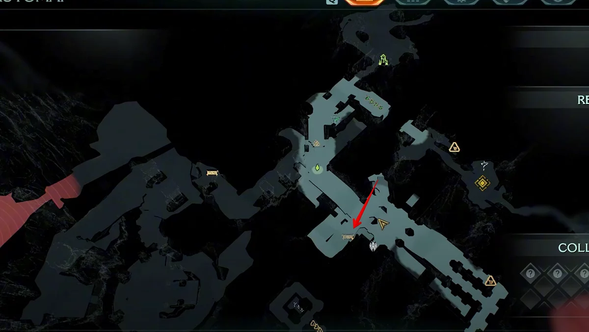 Второй: Получив красный череп, откройте ворота и найдите внизу справа круглую платформу. Спуститесь по лестнице вниз, пересеките впадину и сломайте сундук.