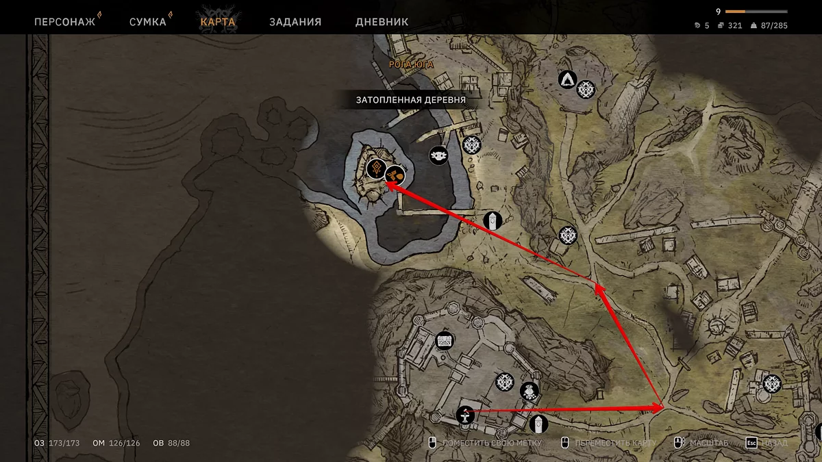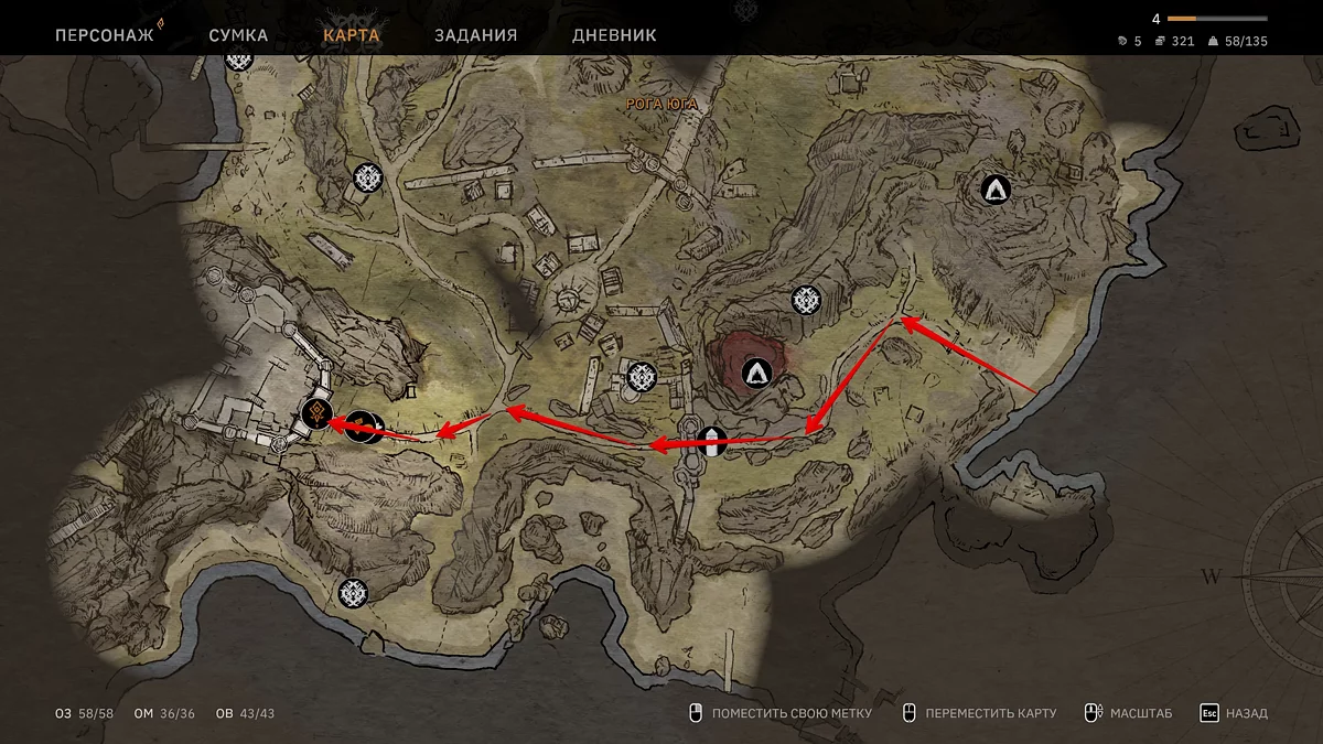 Если разбить камни в проходе справа от кирки, откроется путь к пыточной, где можно найти массу ценных ресурсов. На алтаре около чаши возьмите заклинание «Переливание крови». Кровотечение – в течение времени отнимает у цели некоторое количество ОЗ.