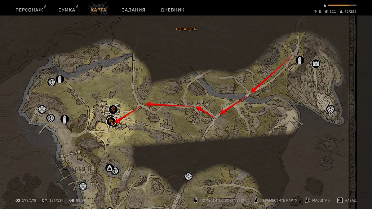 - Зелье — найдите Железный зуб, Самогон и Волчий корень.