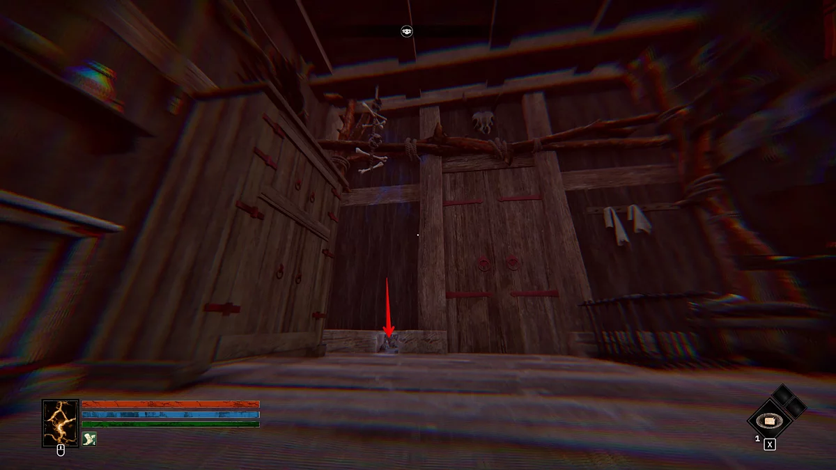 Обыщите рабочее место тюремщика и возьмите статуэтку здоровья Менгира. Статуэтка — это одноразовый предмет, который повышает какую-либо характеристику. Около статуэтки стоит эль. Опьянение – увеличивает урон в ближнем бою, восстановление выносливости и критический урон, но снижает шанс критического удара и скорость атаки, а так вы производите больше шума. Учтите, что алкоголь чаще всего выступает как основа для зелий.