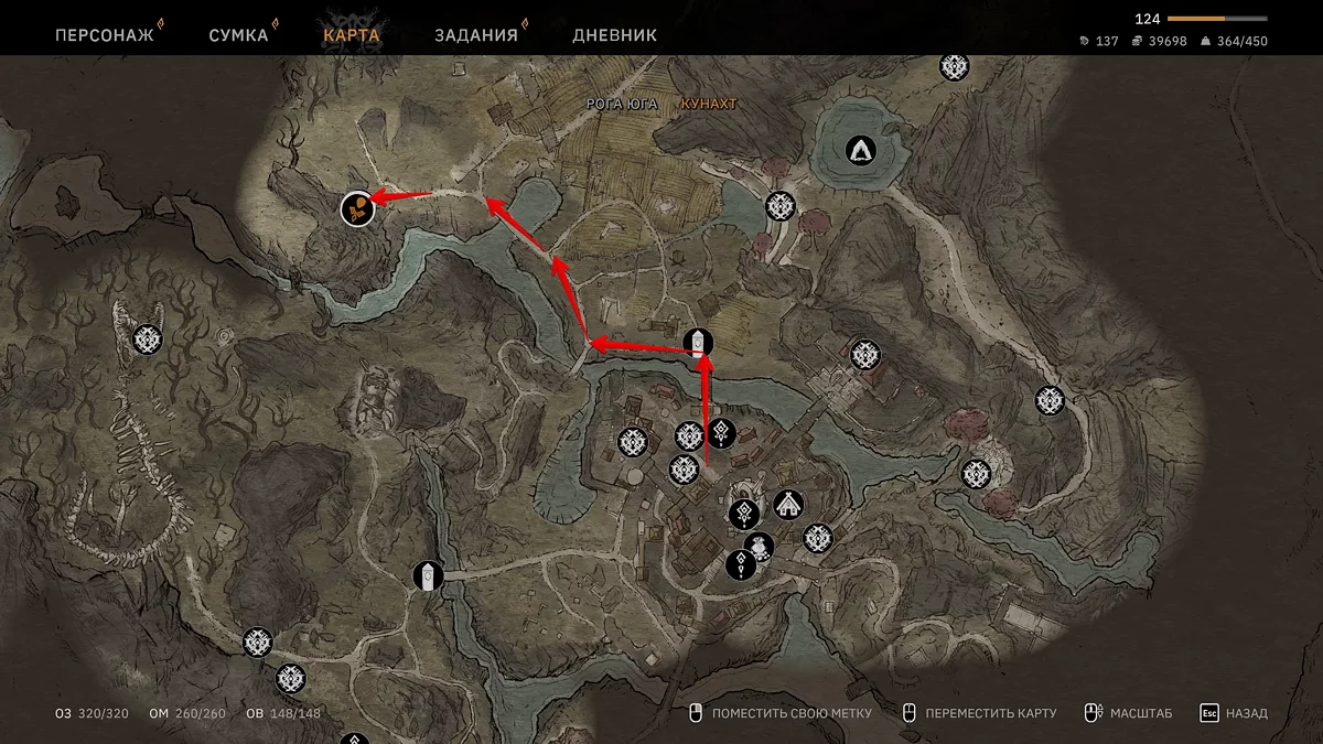Покиньте крепость и следуйте по дороге до первой развилки, уйдите налево и двигайтесь, пока не встретите Марга в «Лагере охотников».