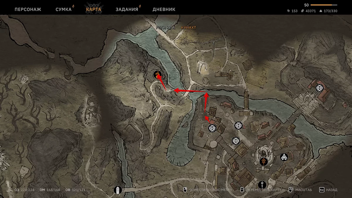 Поговорите с парнем на распятии, убейте его и возьмите «Жетон Ниниана». Потом в «Рогах Юга» отдадите их Фьягасу. Можете воспользоваться алхимическим столом, затем заглянуть к брату Сириусу и поговорить о чуме.