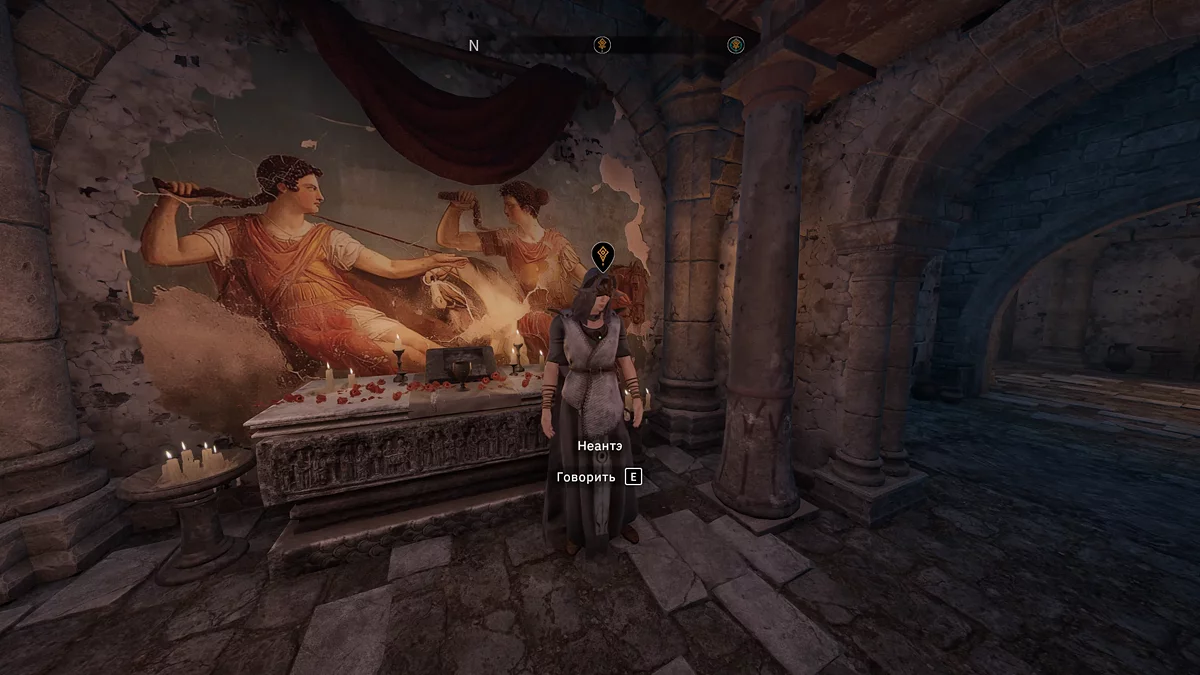 Затем вернитесь ко второму святилищу и двигайтесь в юго-западном направлении, пока не увидите саркофаг, с которого нужно взять «Первый трофей».