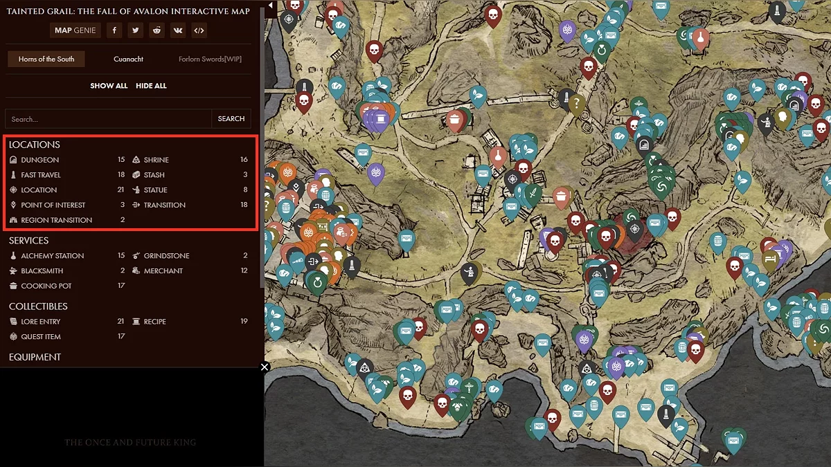 Как пользоваться интерактивной картой в Tainted Grail: The Fall of Avalon