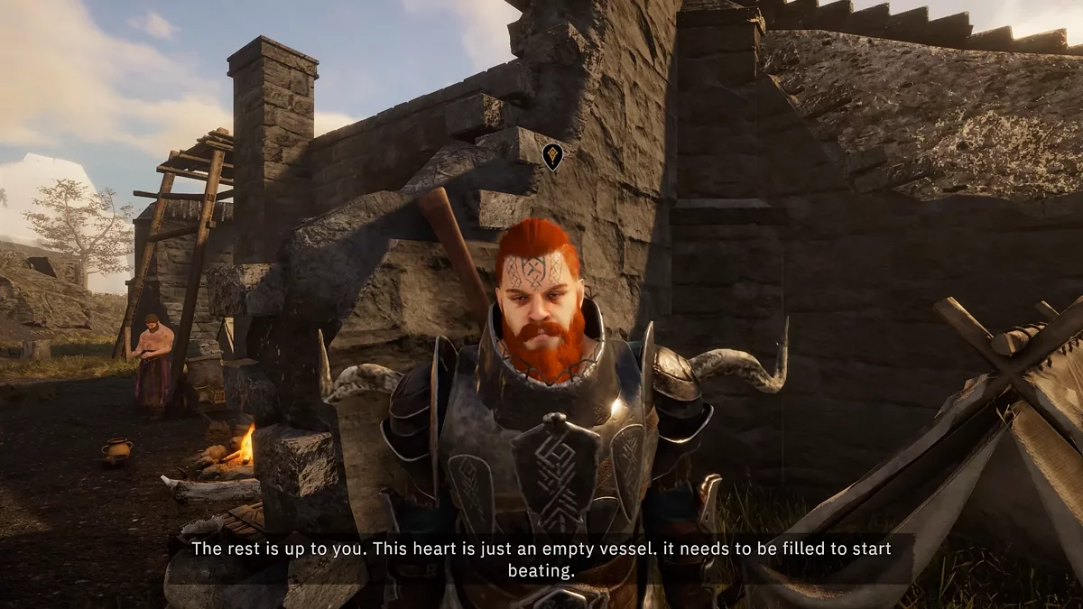 Через несколько дней после выполнения предыдущего квеста снова навестите Беора. Он будет снаружи здания, работая в кузнице. У него для вас будет просьба. Он не может оторваться от повседневных дел, так как у него слишком много заказов, которые он не успел выполнить, пока был нездоров. У него какие-то проблемы с сердцем, и он попросит сделать ему новое.