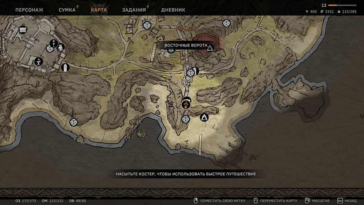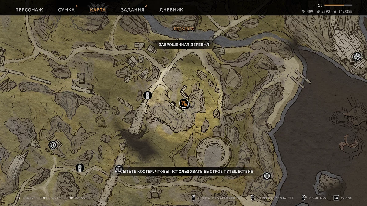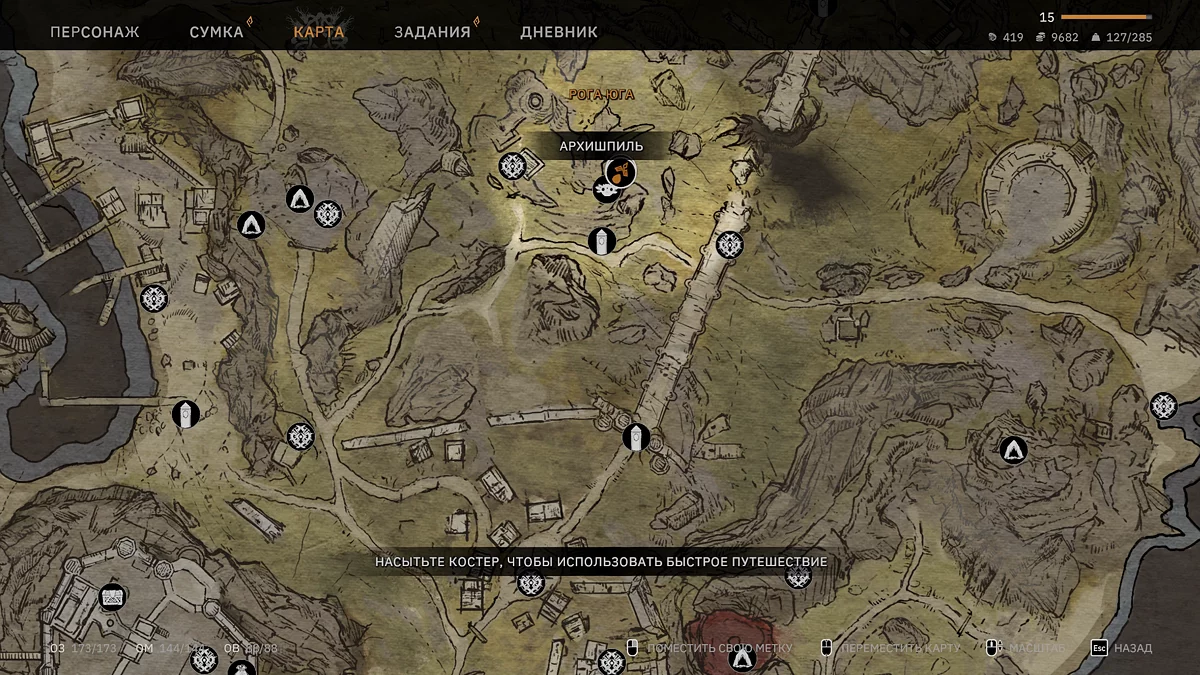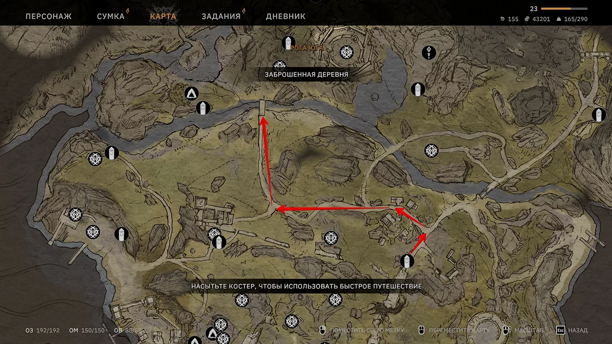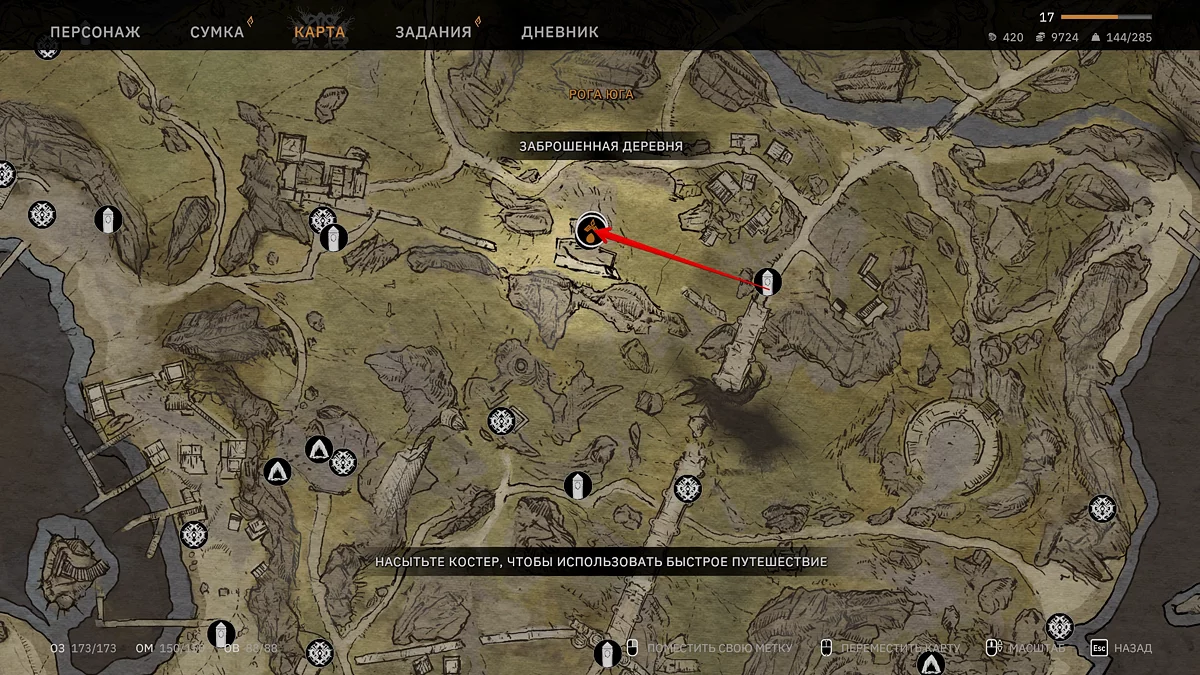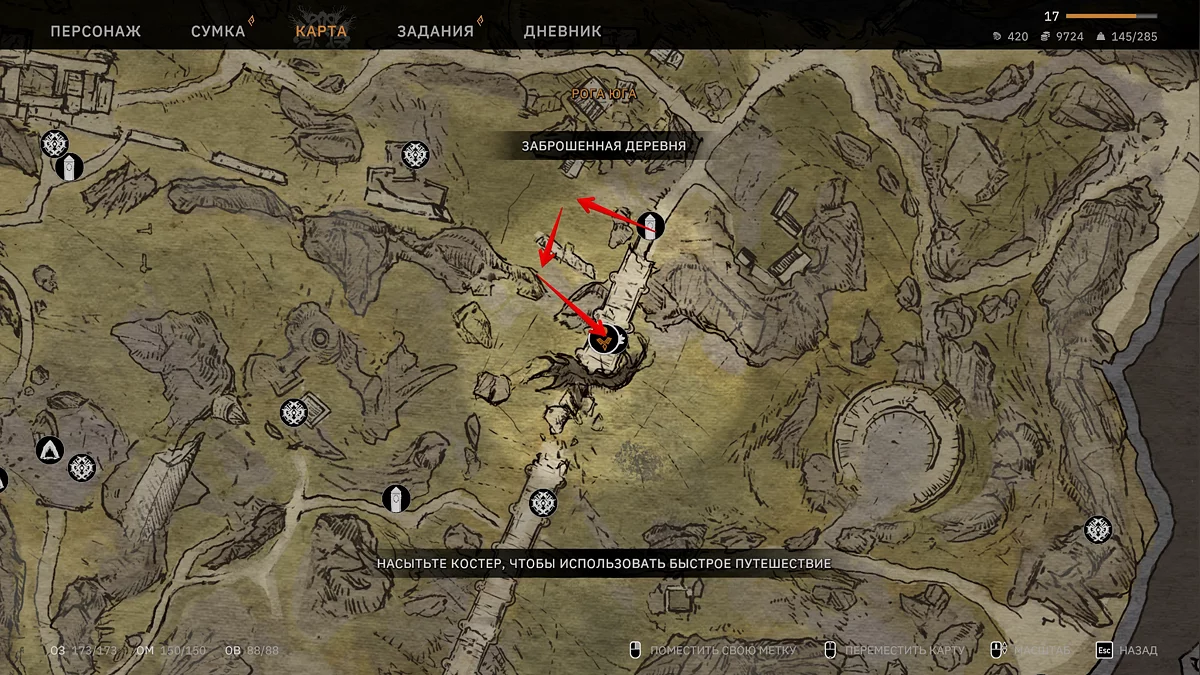 После диалога с Бетрис о кошмарах сельчан отправляйтесь в лагерь рядом с монументом быстрого перемещения «Архишпиль». Перебейте монстров и взаимодействуйте со спальным мешком рядом с лавочкой, после чего окажетесь в магическом пространстве.