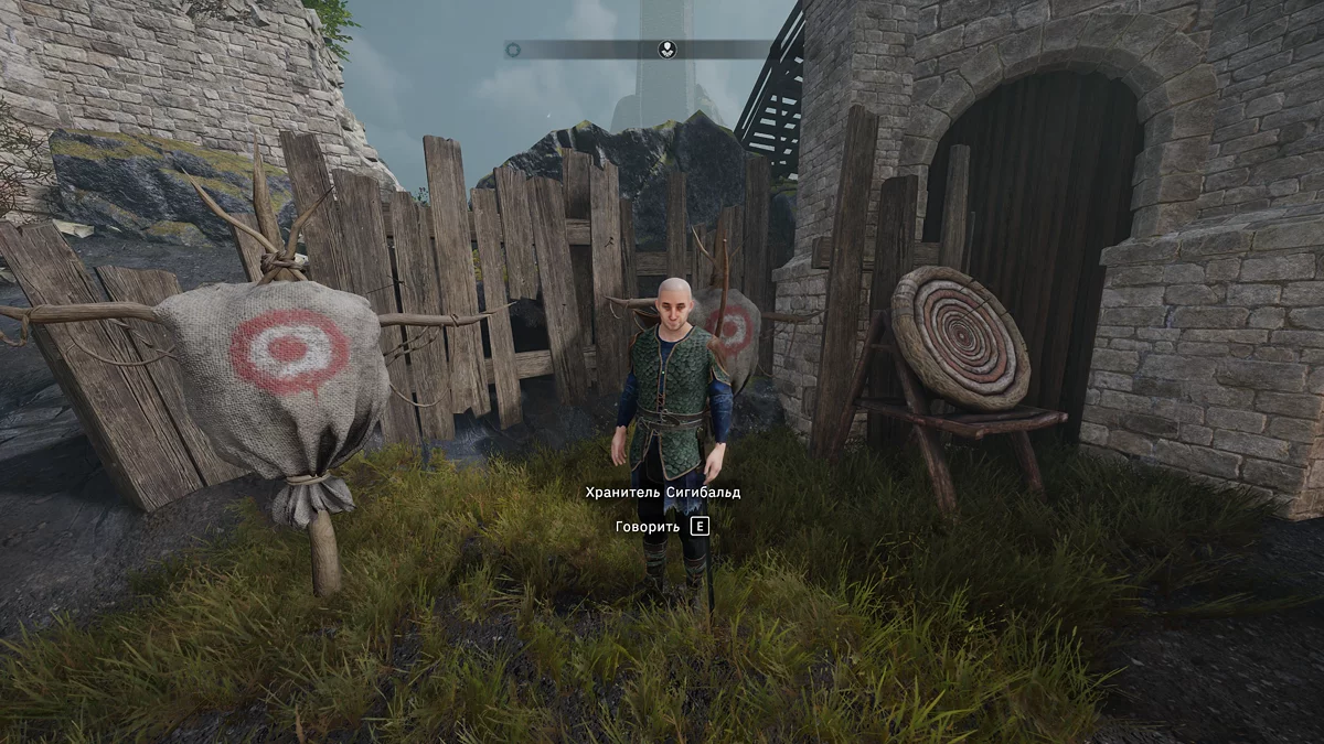 Сигибальд стоит у мишеней на противоположной стороне от палатки интенданта. Парень попросит отыскать служебные бумаги, потерянные в корчме.
