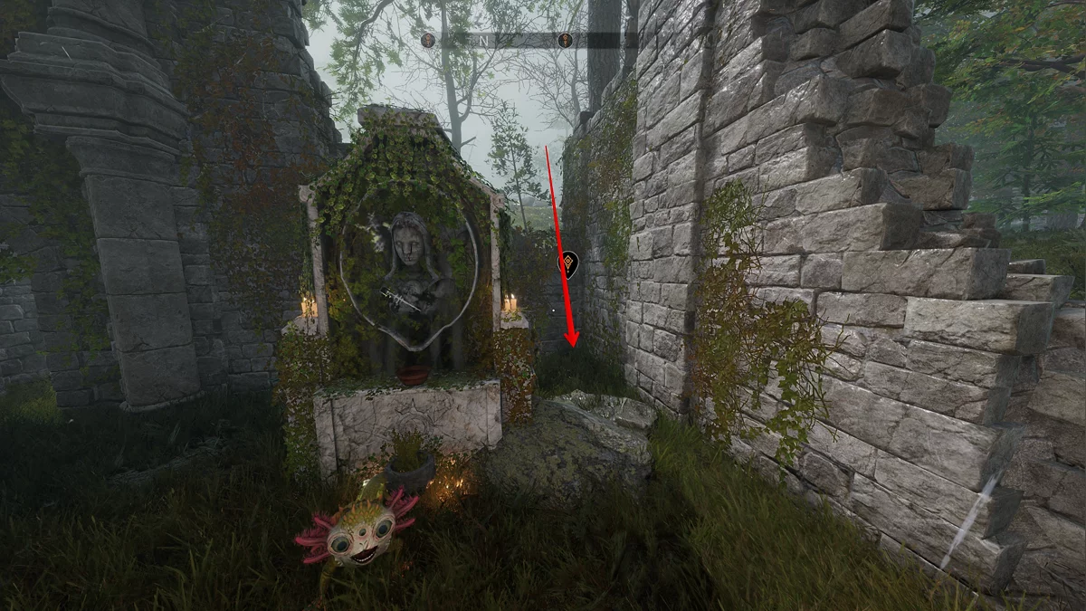 Отправляйтесь к «Заброшенной деревне» и от столба быстрого перемещения двигайтесь налево до руин, затем взаимодействуйте со святилищем праматери.