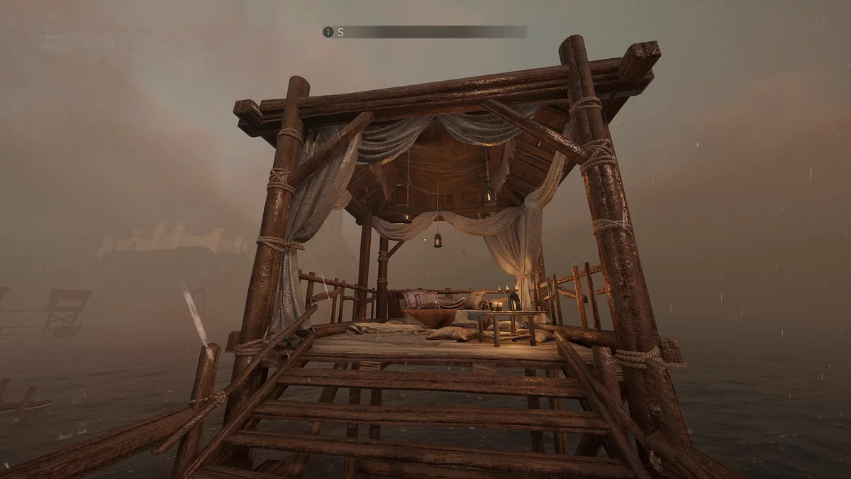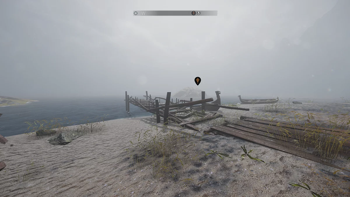 Отыщите на берегу разрушенный пирс, при взаимодействии с которым нужно пожертвовать 50 единиц древесины.