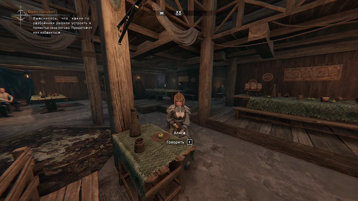 Поговорите с Алисой в деревенской таверне. Девушка, с которой в будущем можно завести роман, приобрела особняк, только его заселили бандиты.