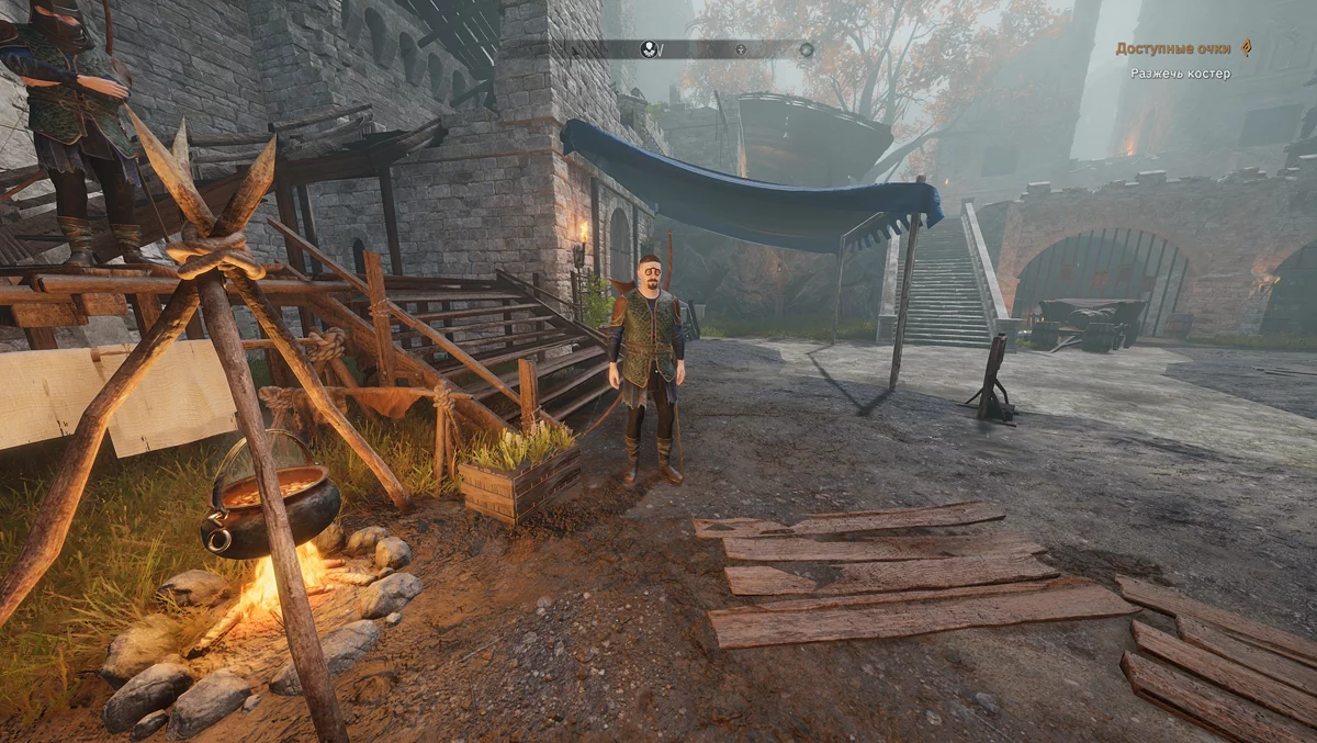 Завершите побочку «Обезболивающее» (Pain Relief) и поговорите с лекарем. Ян попросит провести древний обряд друидов. Первым делом добудьте лук, оленину и чеснок — можно купить у крепостного повара прямо напротив врачебного кабинета.