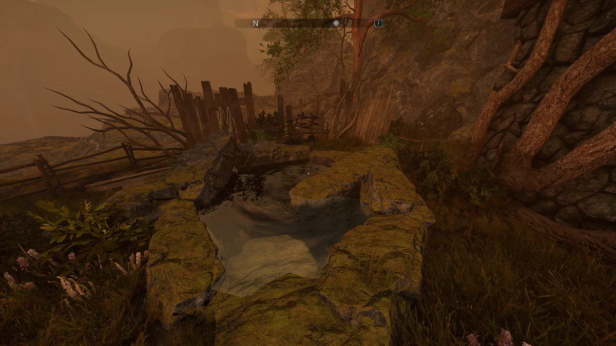 ПалисадникСпуститесь в сторону камня перемещения и около помоста посмотрите на кучу камней справа.