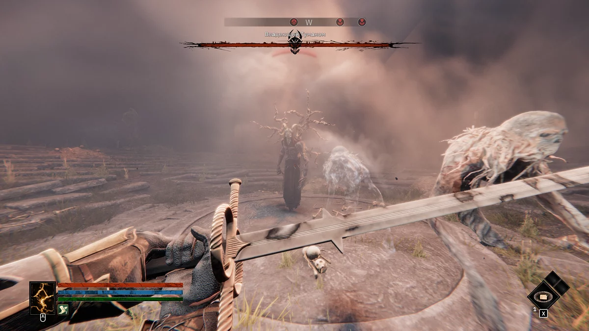 Войдите в пещеру и поговорите с Таранисом, который попросит принести ему останки одного из обитателей руин. Двигайтесь до конца подземелий и убейте «Владеющего туманом». Босс призывает туманников и свои копии. Первым делом убивайте призраков, потому что в этот момент чудище ослабевает и падает на колени.