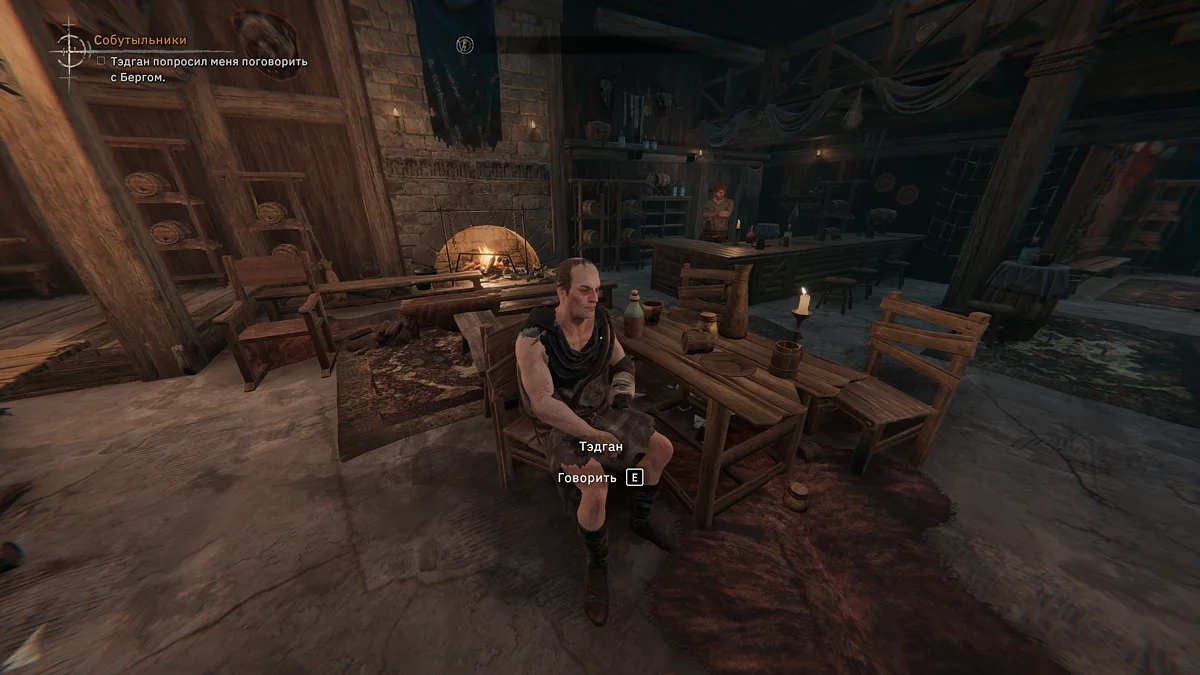Рядом с барной стойкой сидит Тэдган, который попросит найти приятеля, чтобы разговорить мужчину, дайте алкоголь или пять монет.