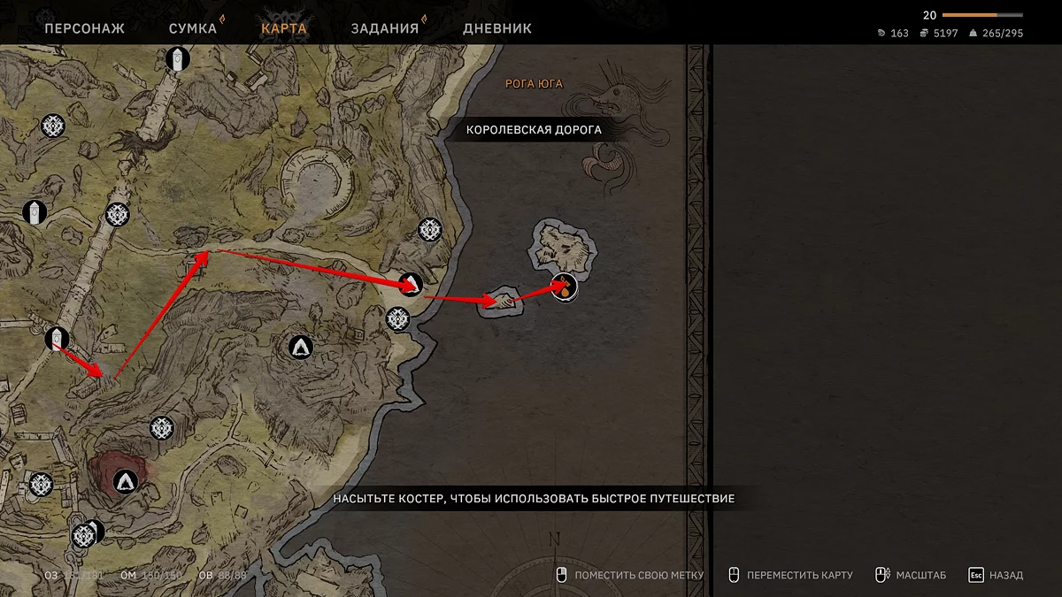 Вернитесь к торговке, получите 500 единиц опыта и десять огненных стрел. Девушка выдаст снаряд, который нужно взорвать в одном месте. Чтобы туда добраться, от камня быстрого перемещения «Королевская дорога» пройдите в брешь справа и двигайтесь до дороги, затем поверните направо и на первом повороте уйдите налево.