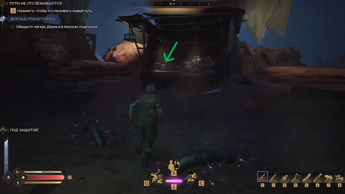 Квест от тренера начинается после первой встречи. Спускайтесь вниз и отыщите с южной стороны скалы вход в испытательную станцию №2. В конце лаборатории откройте дверь справа, подберите со стола кейс, вернитесь к Дереку, затем откроется ветка навыков «Планетолог».