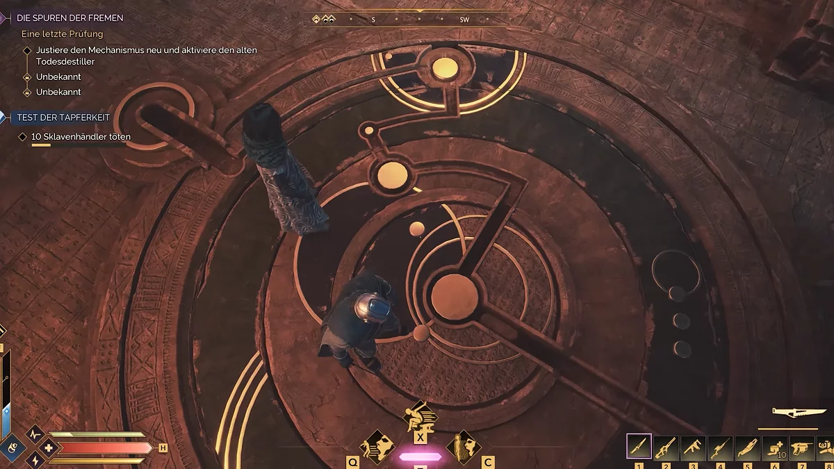 Испытание начнется, как только окажетесь в альтернативной реальности. В первой области прыгайте по островкам, чтобы не упасть в зыбучие пески. Подойдя ко второй части уровня, появится червь — теперь нужно забраться на самую верхнюю колонну. Учтите, что если вы коснётесь земли, героя убьет монстр. Оказавшись на возвышенности, бросайте манок рядом с добытчиком, в результате получите рецепт устройства, с помощью которого можно отвлекать чудовищ.