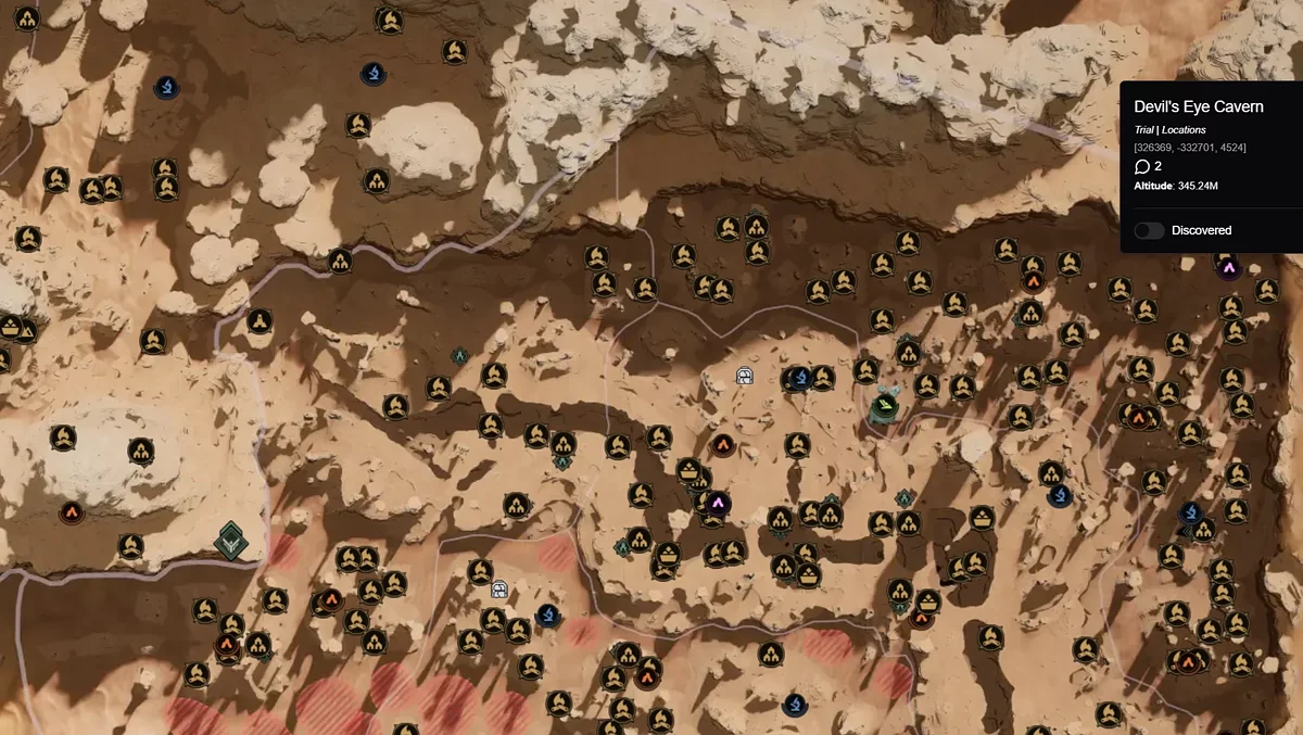 Пещеру «Глаз дьявола» ищите в регионе Джабаль-Эйфрит аш-Шарк. Используйте транспорт, желательно орнитоптер, потому что грот находится на северо-западном краю глобальной карты. Учтите, что путь усеян множеством вражеских лагерей и поселений.
