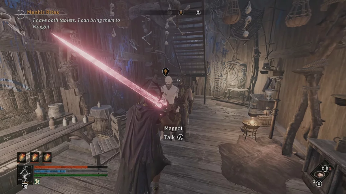 Если вручить артефакты Червю, то следующей ночью он восстановит менгир в Кунахте. Теперь у людей появится надежда, что еще не поздно защититься от Камелота.