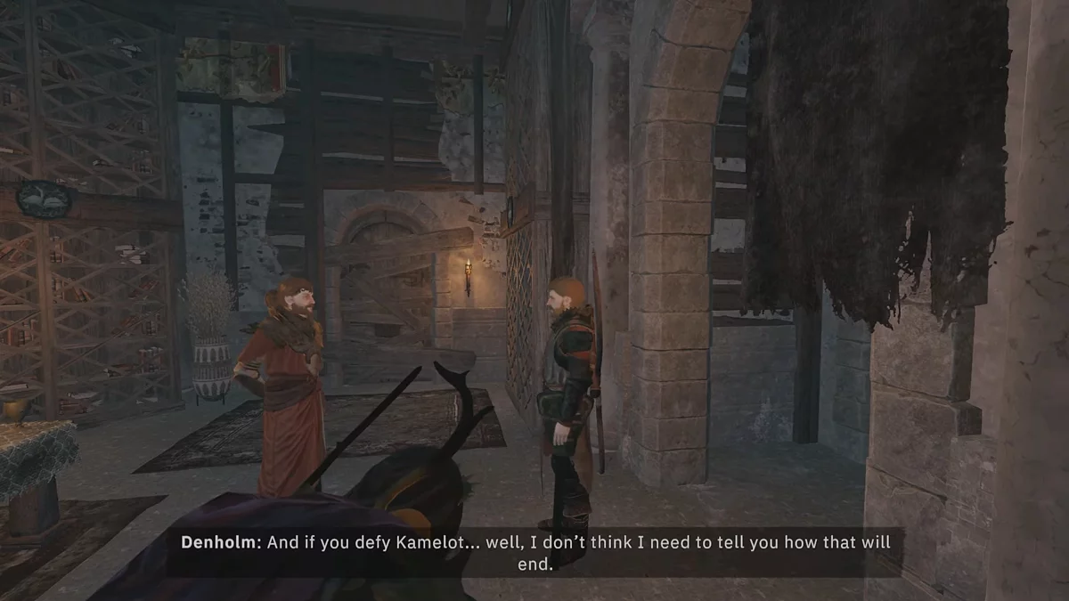 После этого наш персонаж станет невольным свидетелем диалога между Денхольмом и лордом Ивейном, отправляющимся в поход за священным граалем. Первый герой расстроен, что у него не получилось ослабить Кунахт. Мы не получим его денежное вознаграждение из-за несостоявшегося предательства.