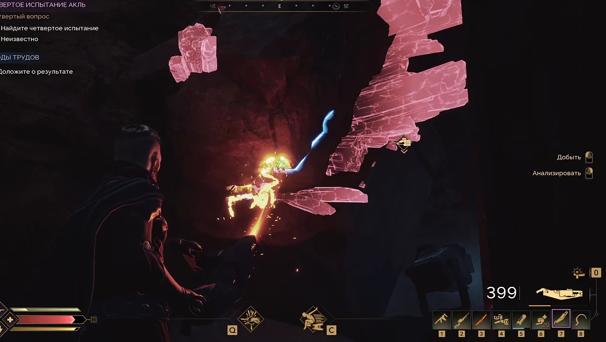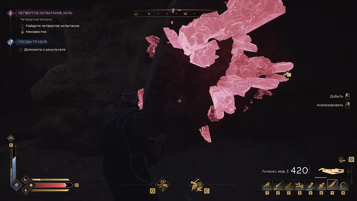 На залежах минерала есть змеевидная полоса. Чтобы расколоть кристалл, нужно лучерезом пройтись по контуру, после чего материал автоматически окажется в инвентаре персонажа.