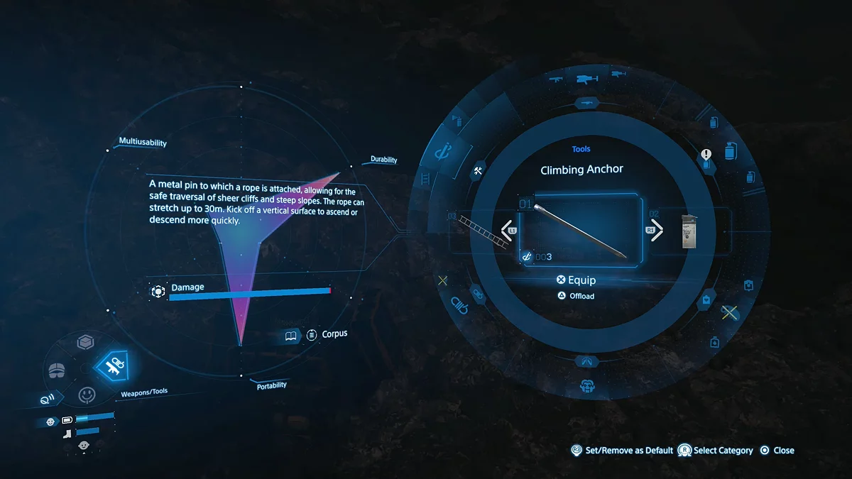 Установите якорь на краю скалы или воспользуйтесь уже установленным другим носильщиком, а затем начинайте спуск. Обычно потребуется около 3 якорей, чтобы подобраться ближе к месту, где находится коллекция пластинок. Когда окажетесь в зоне, обозначенной миссией, всё равно придётся поискать предмет внутри этой области. Если хотите облегчить поиск, нажмите L1 и активируйте сканер.