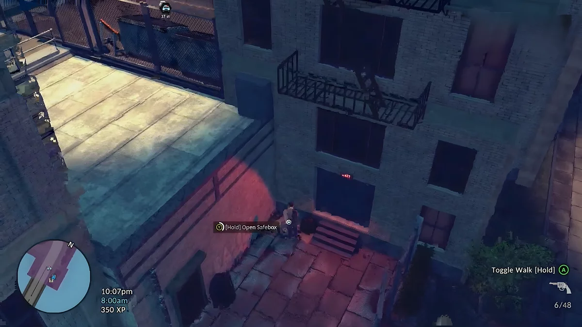 Поднимитесь на крышу жилого дома в центре квартала с помощью лестницы у забора рядом с мусорным контейнером. Направляйтесь к сейфу, что лежит на вентиляционном коробе. Теперь решите загадку: «Меньше, чем у меня рук, половина пальцев ног, в два раза больше, чем голов, в четыре раза больше, чем носов» (Less than my hands, half of my toes, double my head, four times my nose), затем наберите код: 1-5-2-4, в результате получите «Серебряный дублон» (Silver Dubloon).